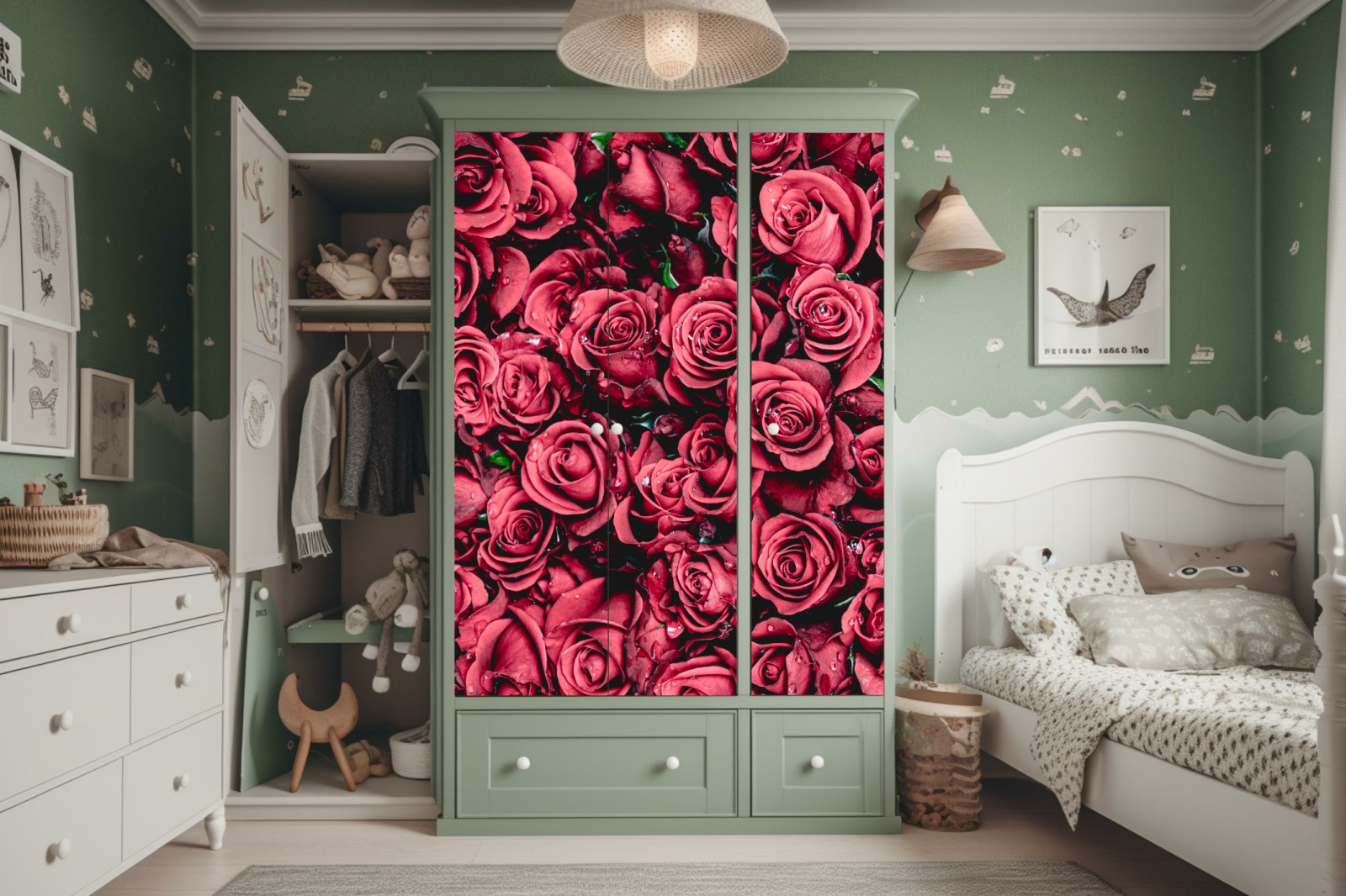Naklejka na szafę Gęste czerwone róże dekoracja ścienna