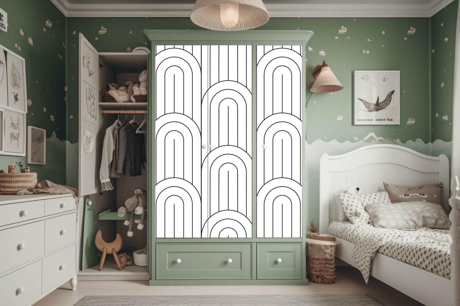 Design i funkcjonalność: Naklejki nie tylko zdobią, ale także chronią powierzchnię szafy, przedłużając jej żywotność.
