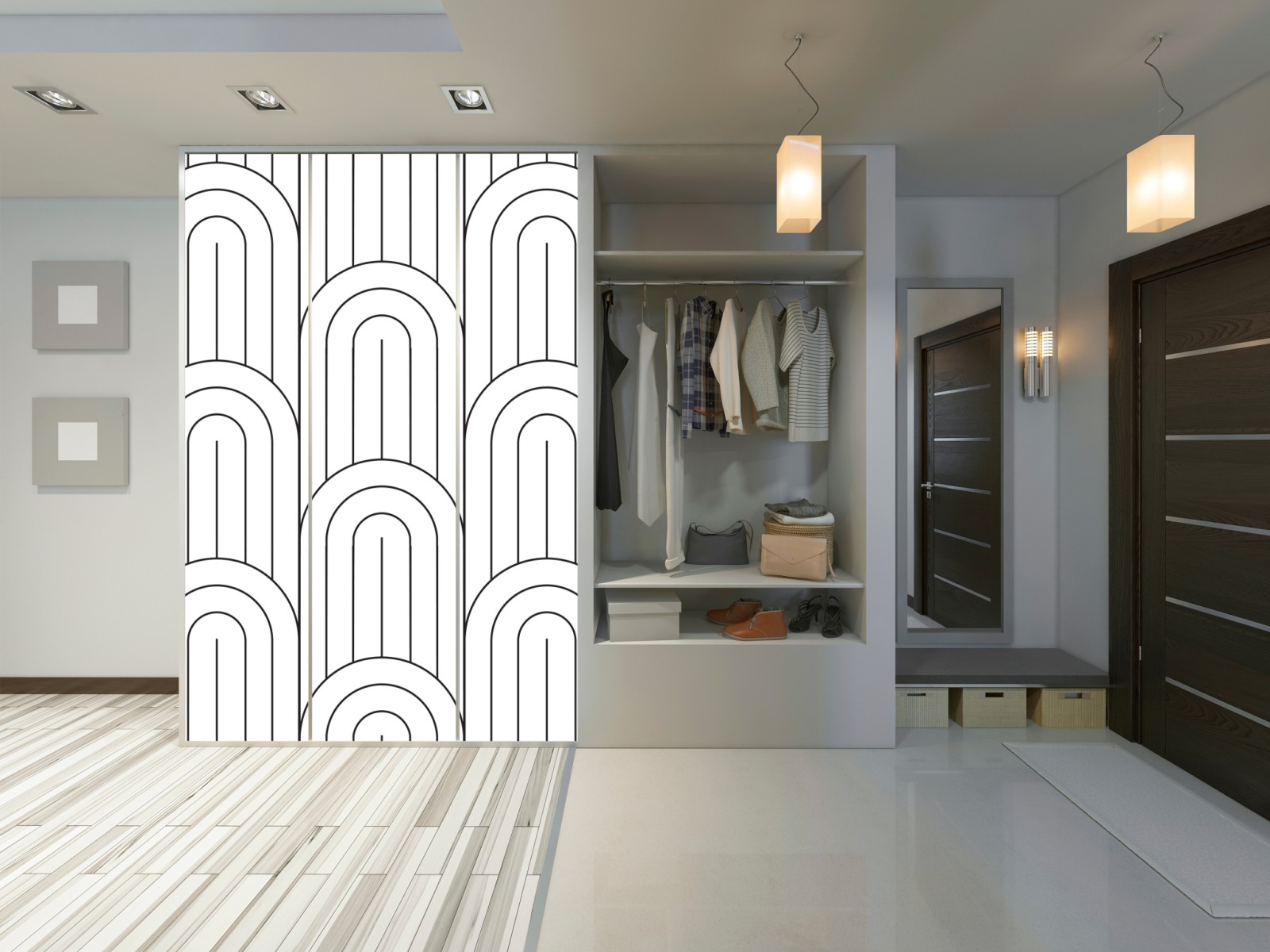 Naklejka na szafę Monochromatyczny wzór łuków