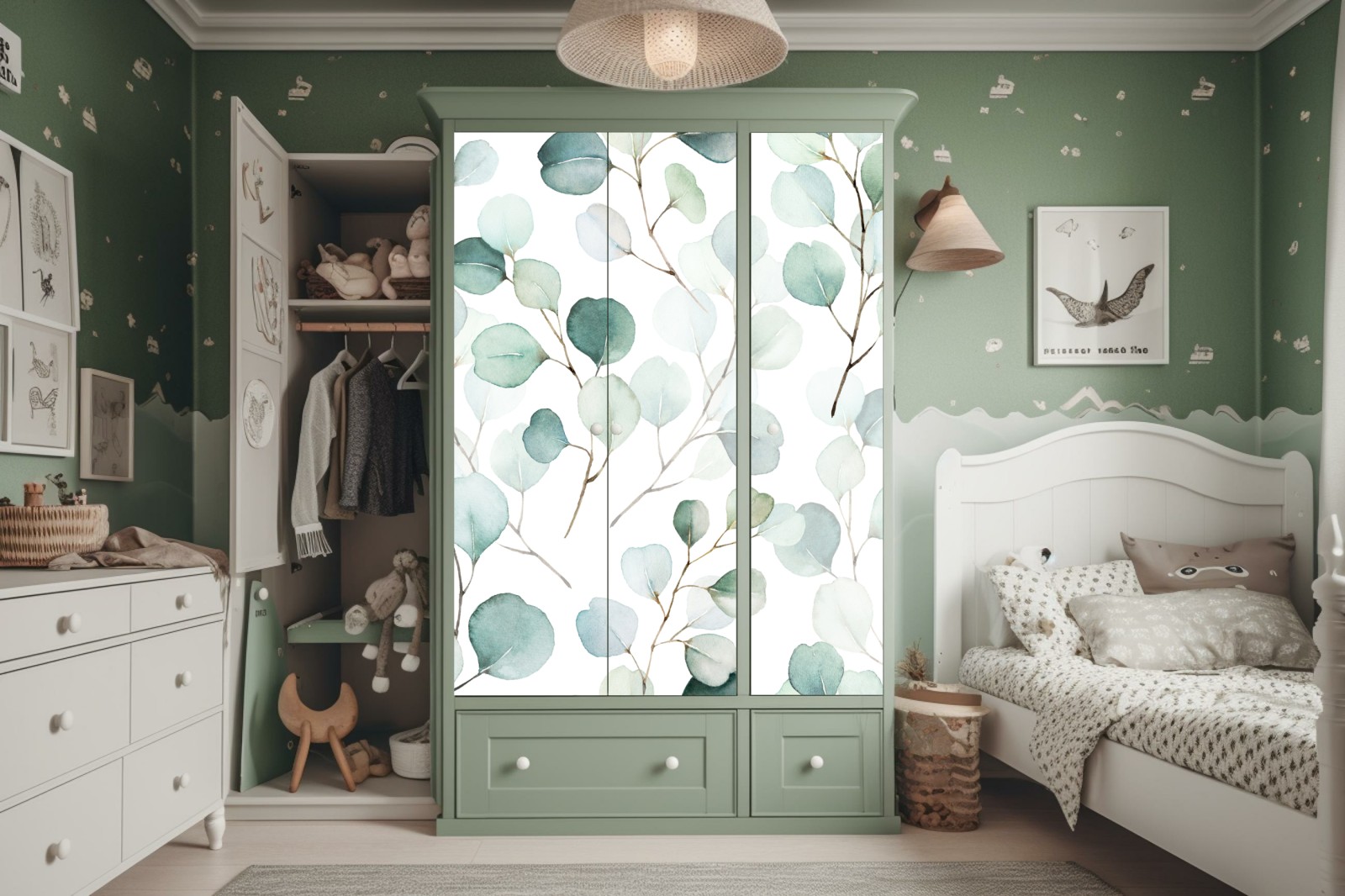Naklejka na szafę Delikatny wzór liści eukaliptusa w akwareli
