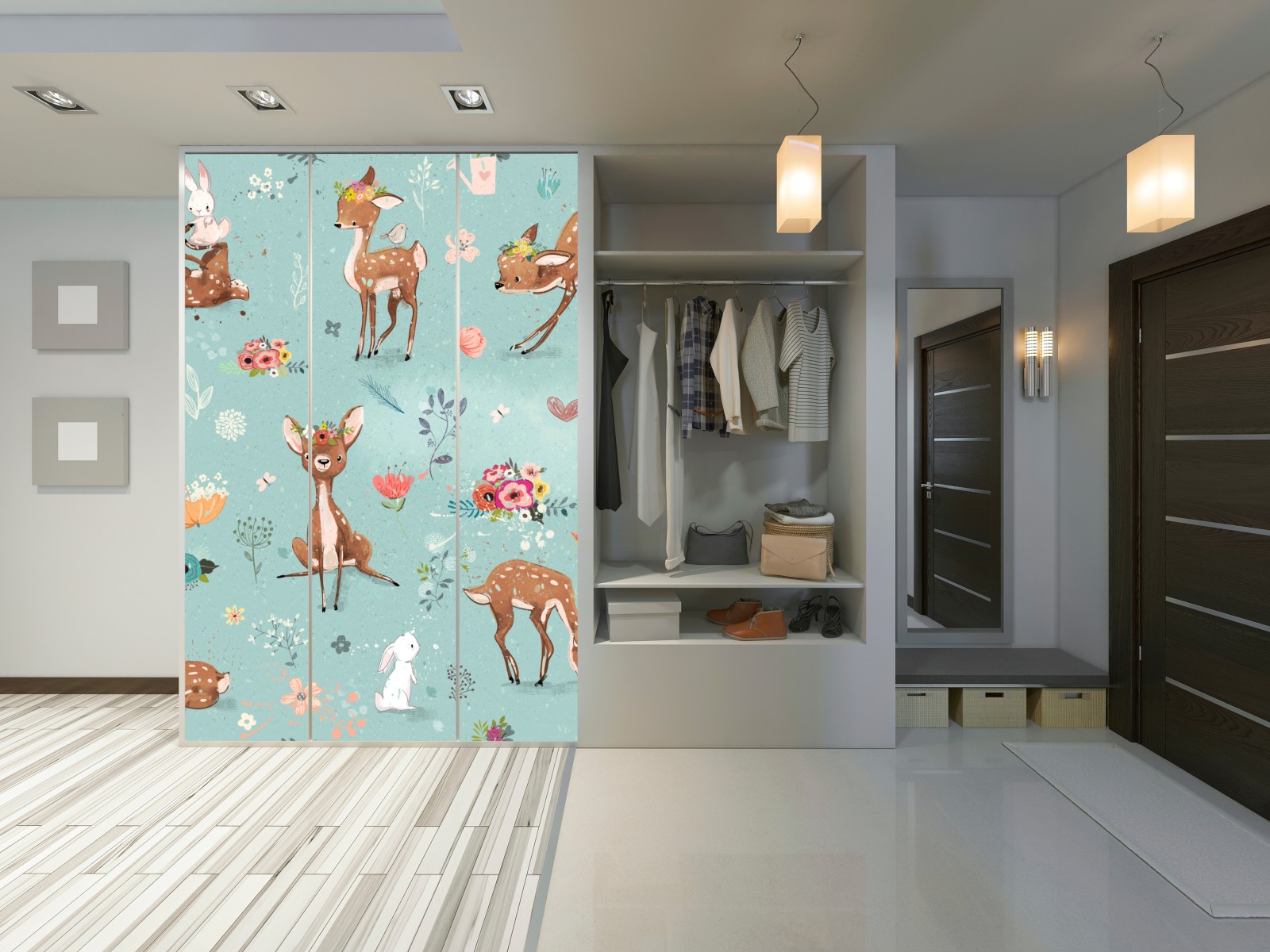 Naklejka na szafę Pastelowy wzór leśnych sarenek i królików