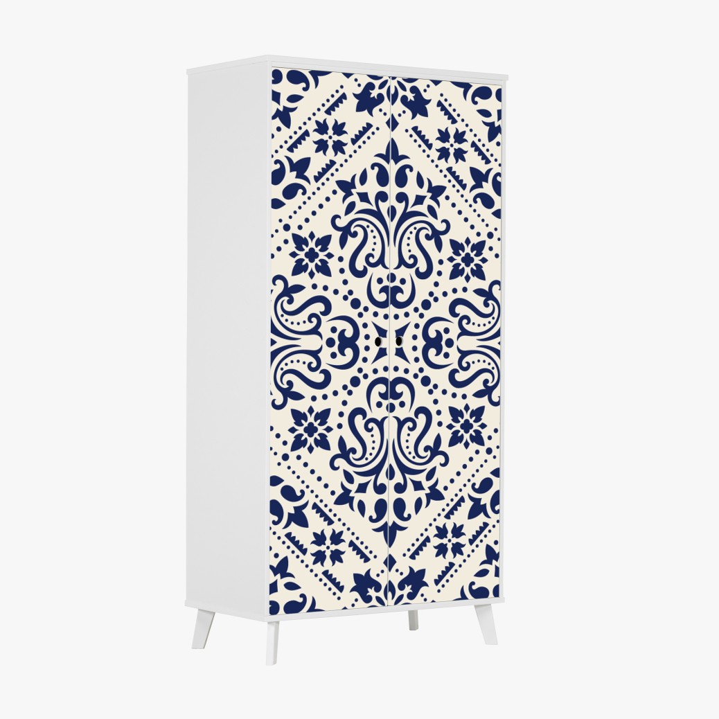 Naklejka na szafę Granatowy wzór damaskowy na płytkach