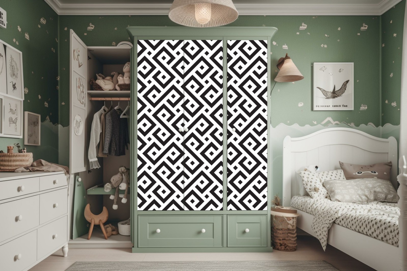 Design i funkcjonalność: Naklejki nie tylko zdobią, ale także chronią powierzchnię szafy, przedłużając jej żywotność.