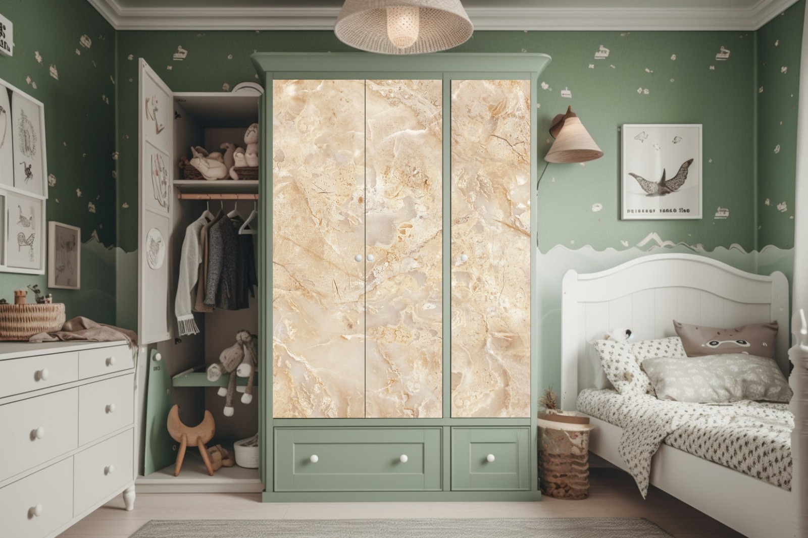 Design i funkcjonalność: Naklejki nie tylko zdobią, ale także chronią powierzchnię szafy, przedłużając jej żywotność.