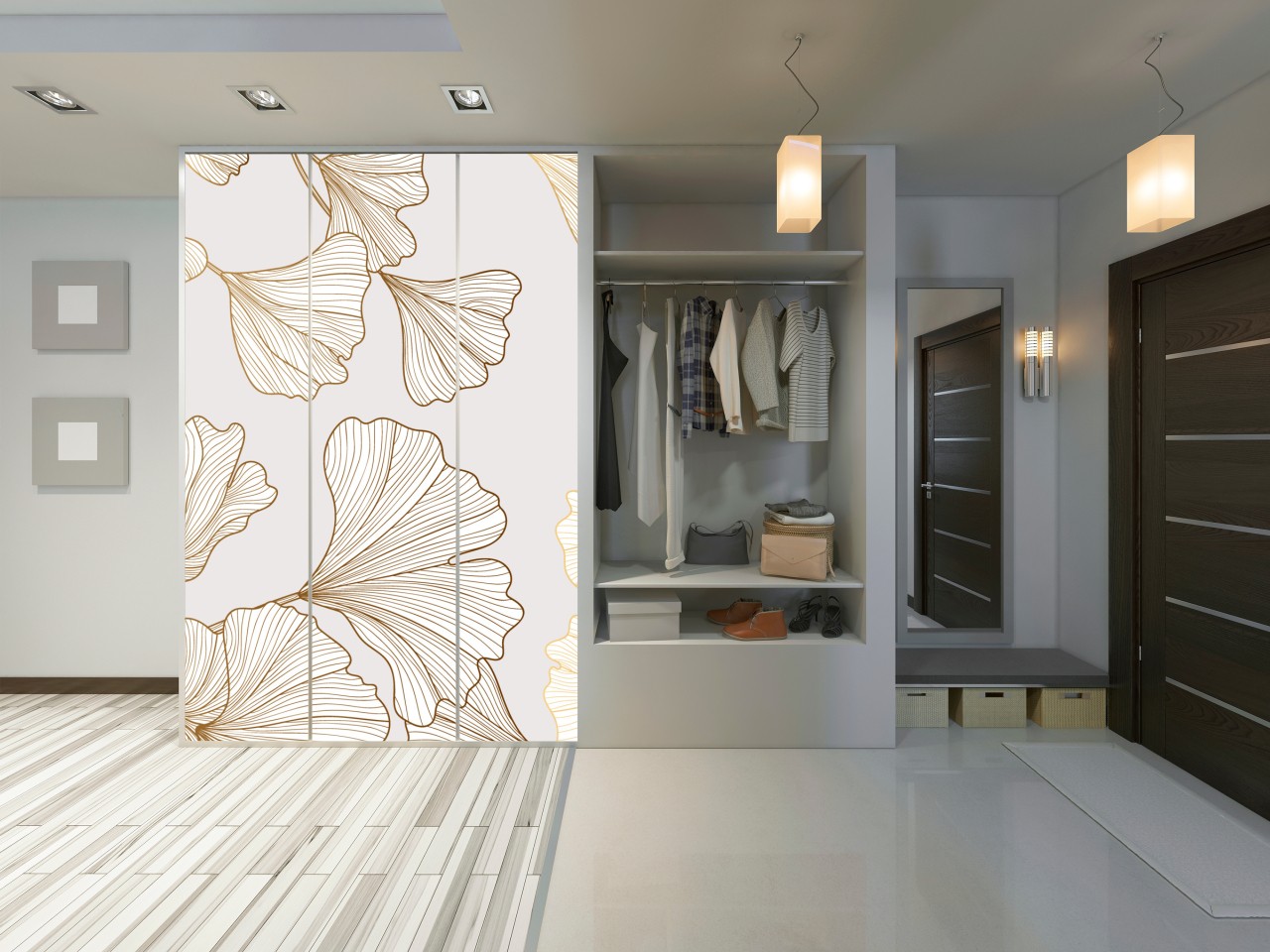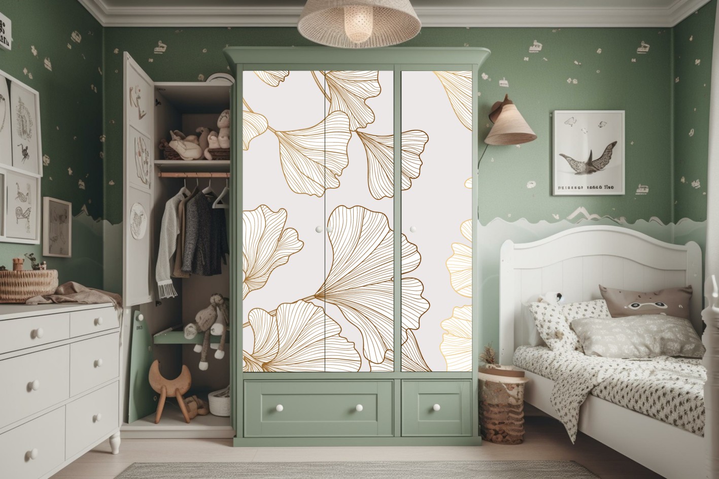 Naklejka na szafę Delikatny złoty wzór miłorzębu