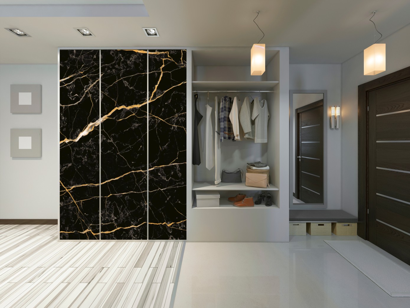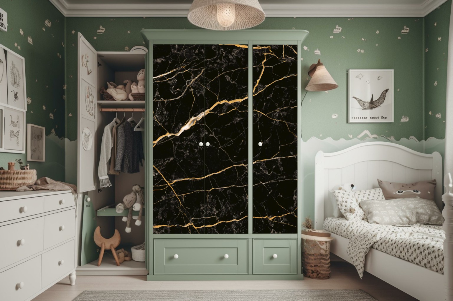 Naklejka na szafę Czarny marmur ze złotymi żyłami