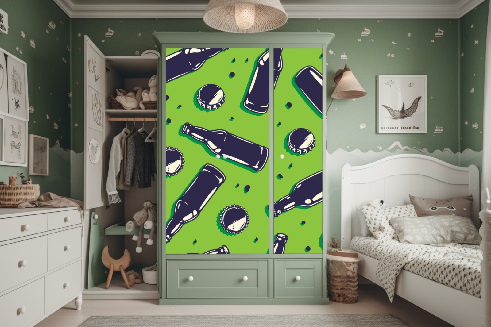 Design i funkcjonalność: Naklejki nie tylko zdobią, ale także chronią powierzchnię szafy, przedłużając jej żywotność.