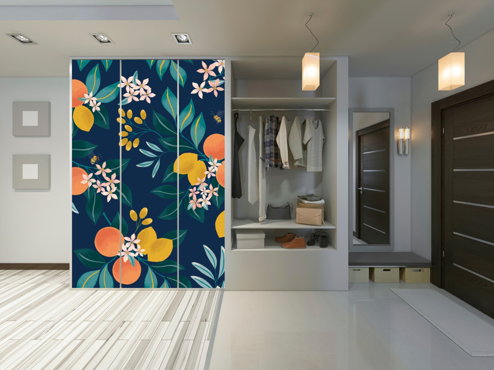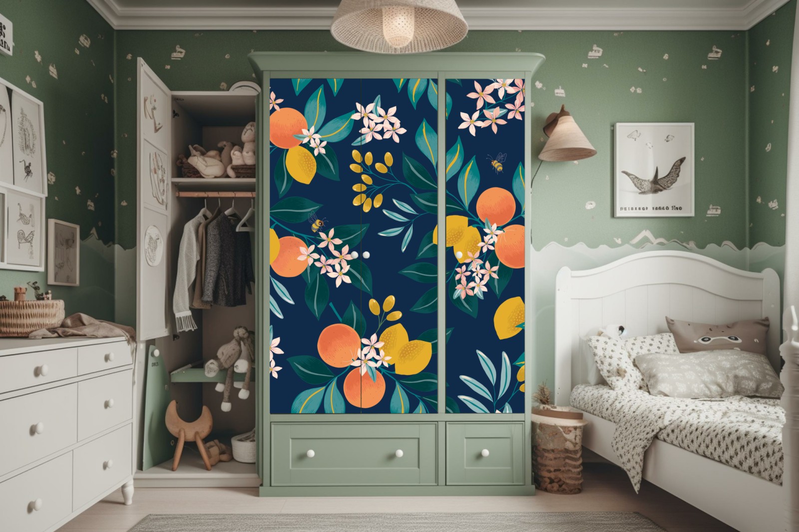 Naklejka na szafę Botaniczny wzór z kwiatami cytrusów na granatowym tle