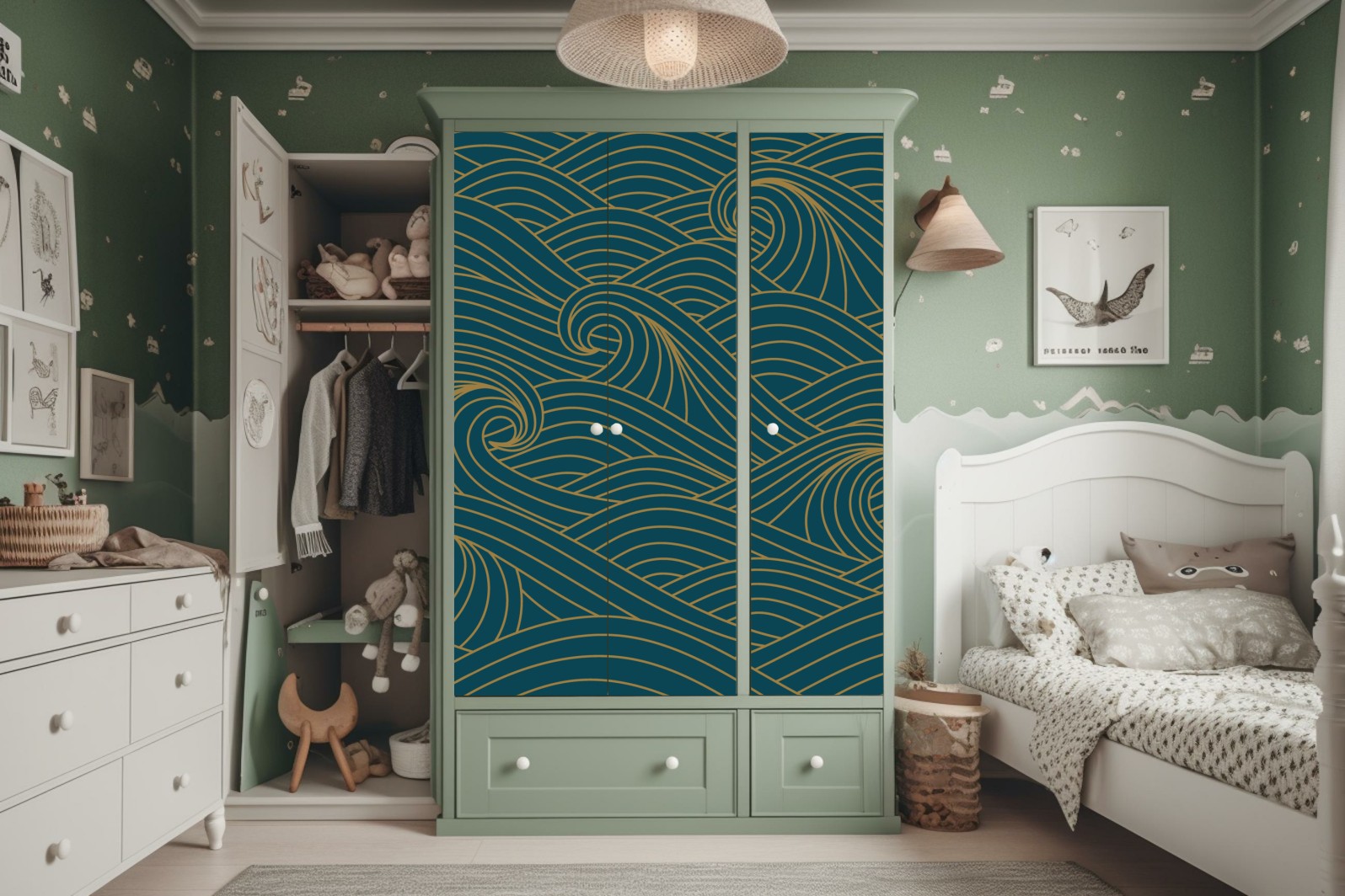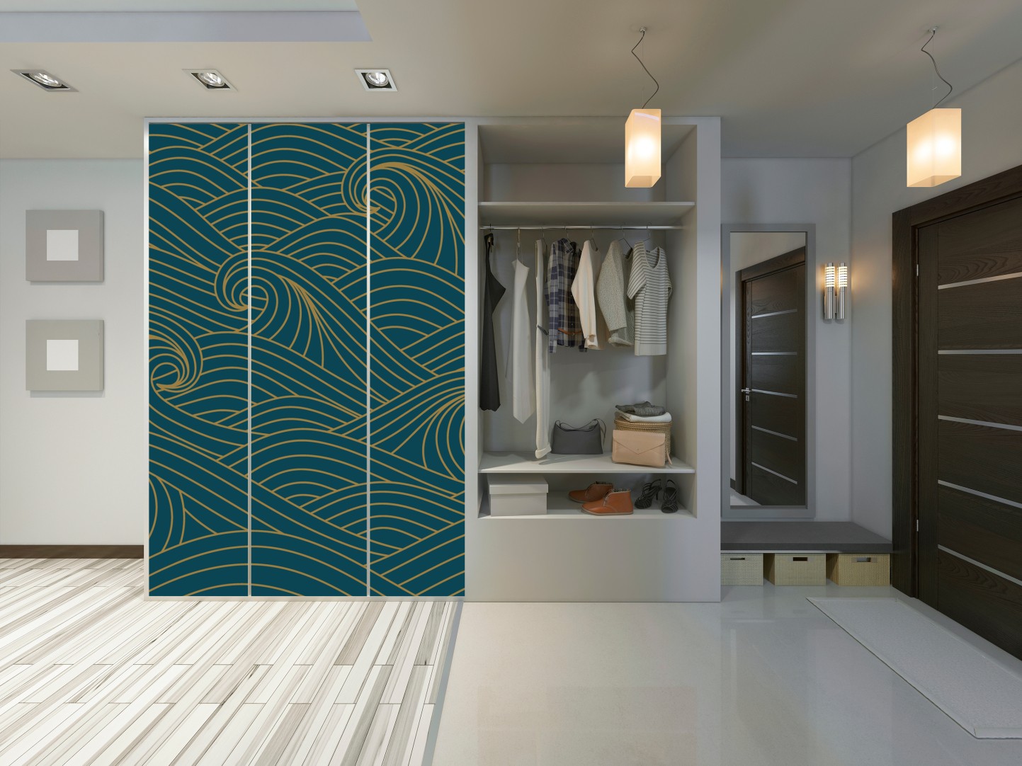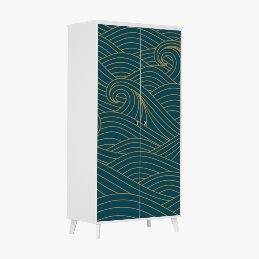 Naklejka na szafę Turkusowy wzór fal ze złotymi liniami