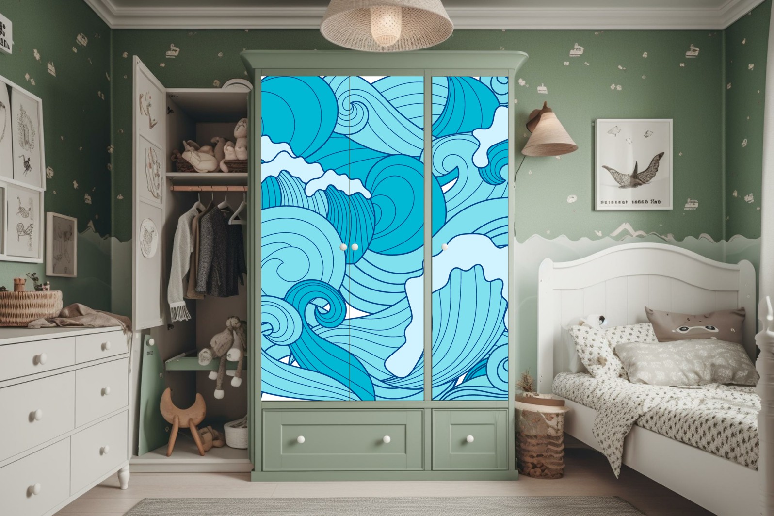 Design i funkcjonalność: Naklejki nie tylko zdobią, ale także chronią powierzchnię szafy, przedłużając jej żywotność.