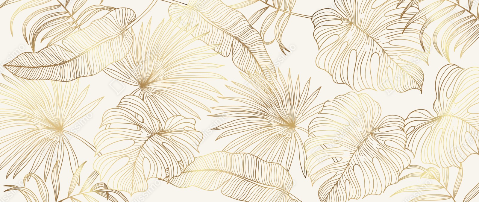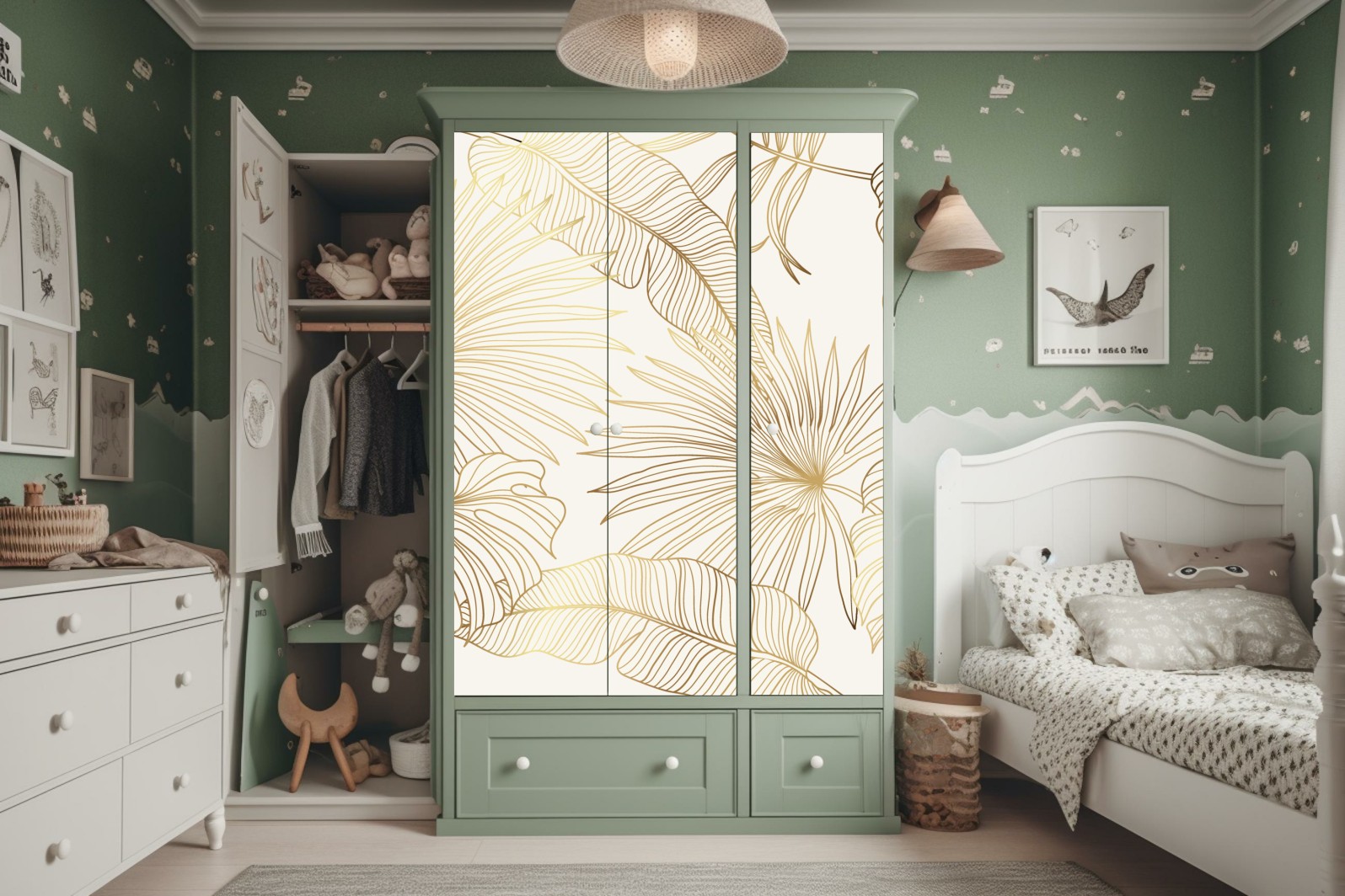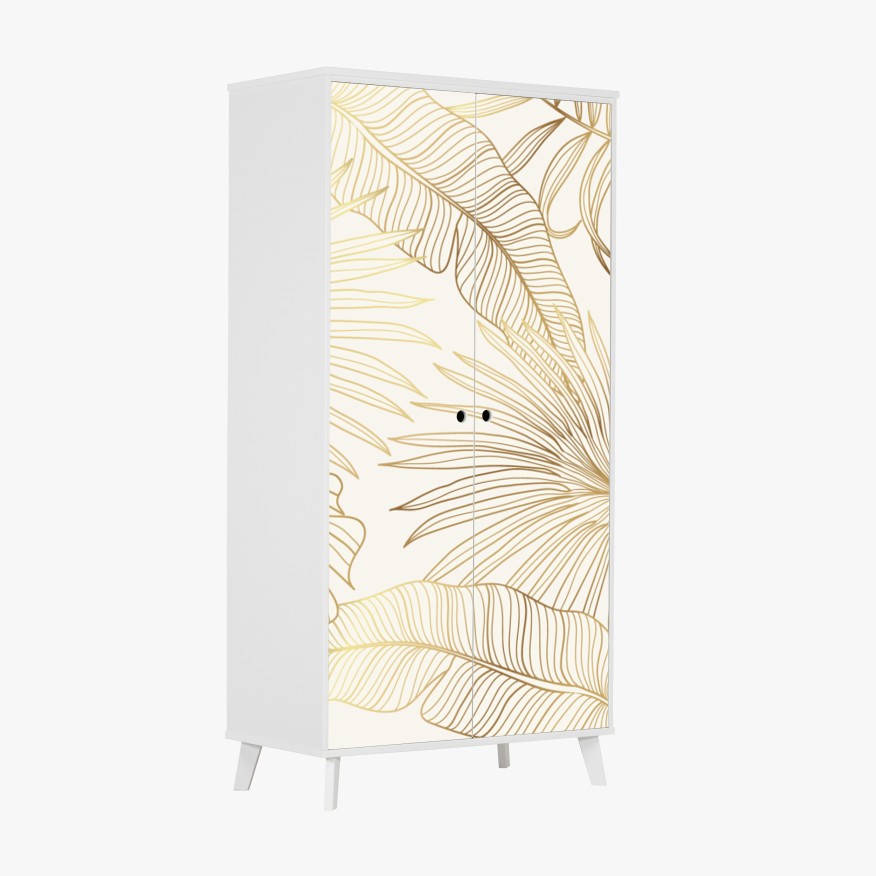 Naklejka na szafę Złote tropikalne liście na beżowym tle