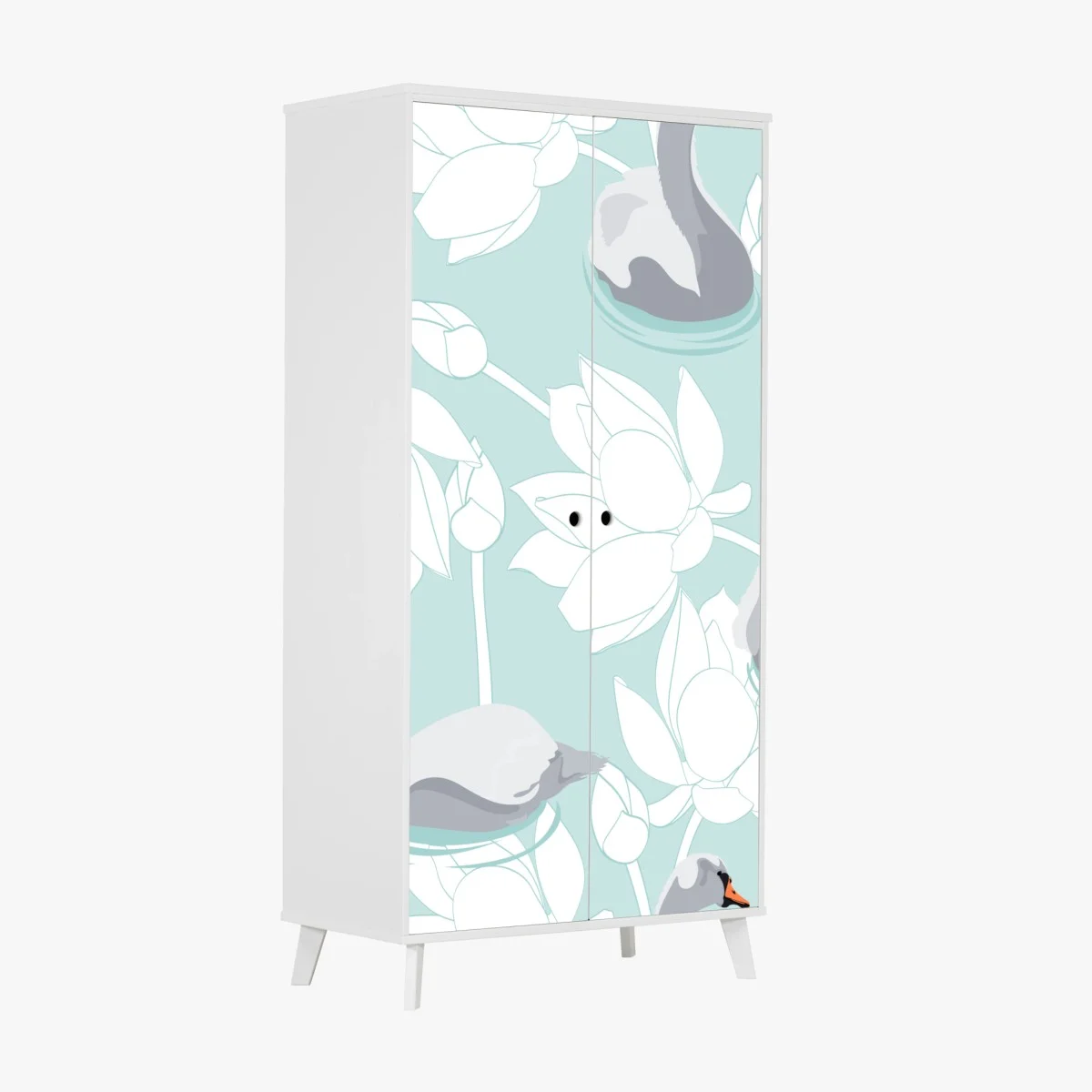 Naklejka na szafę Spokojne łabędzie i lotosy