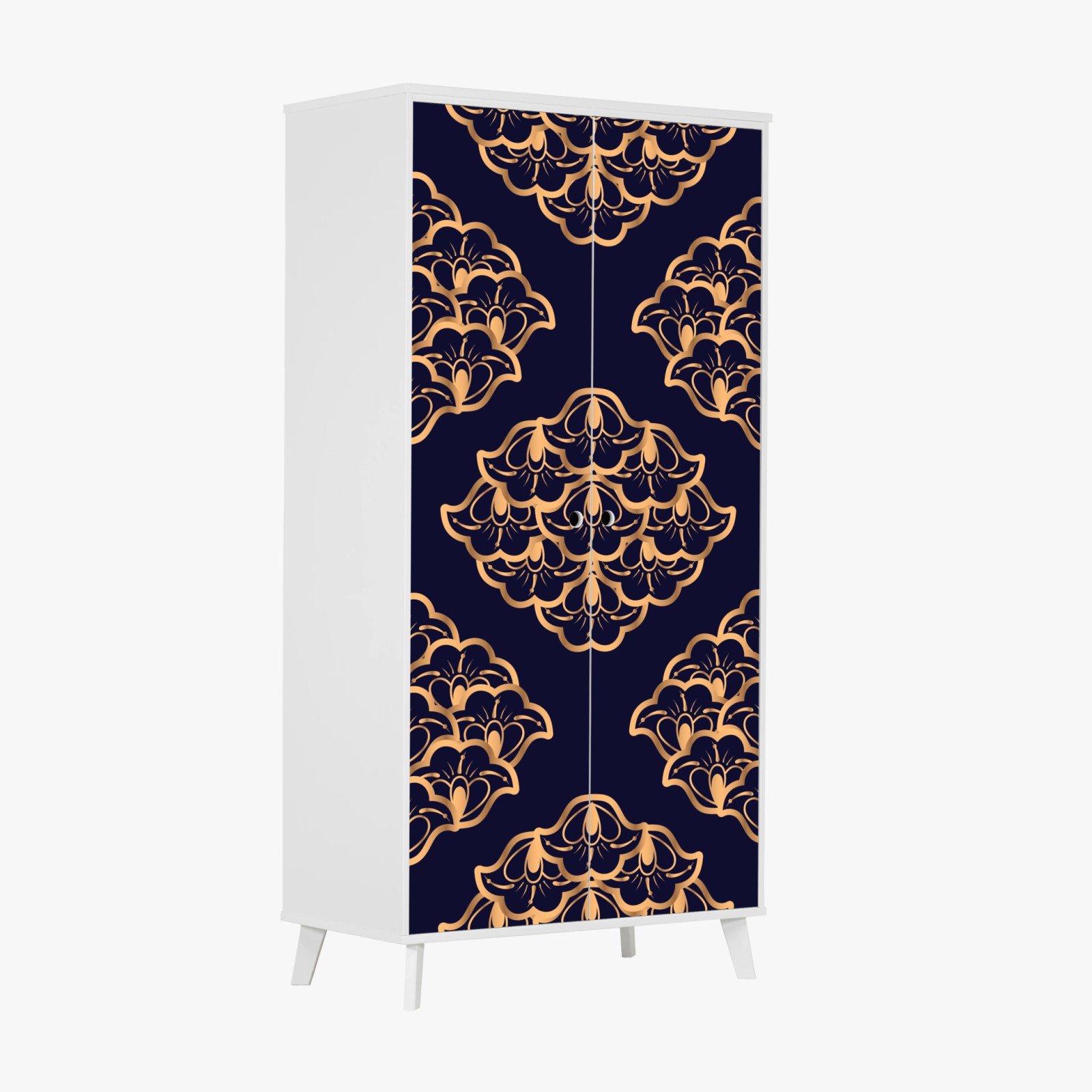Naklejka na szafę Złoty wzór damaskowy na granatowym tle