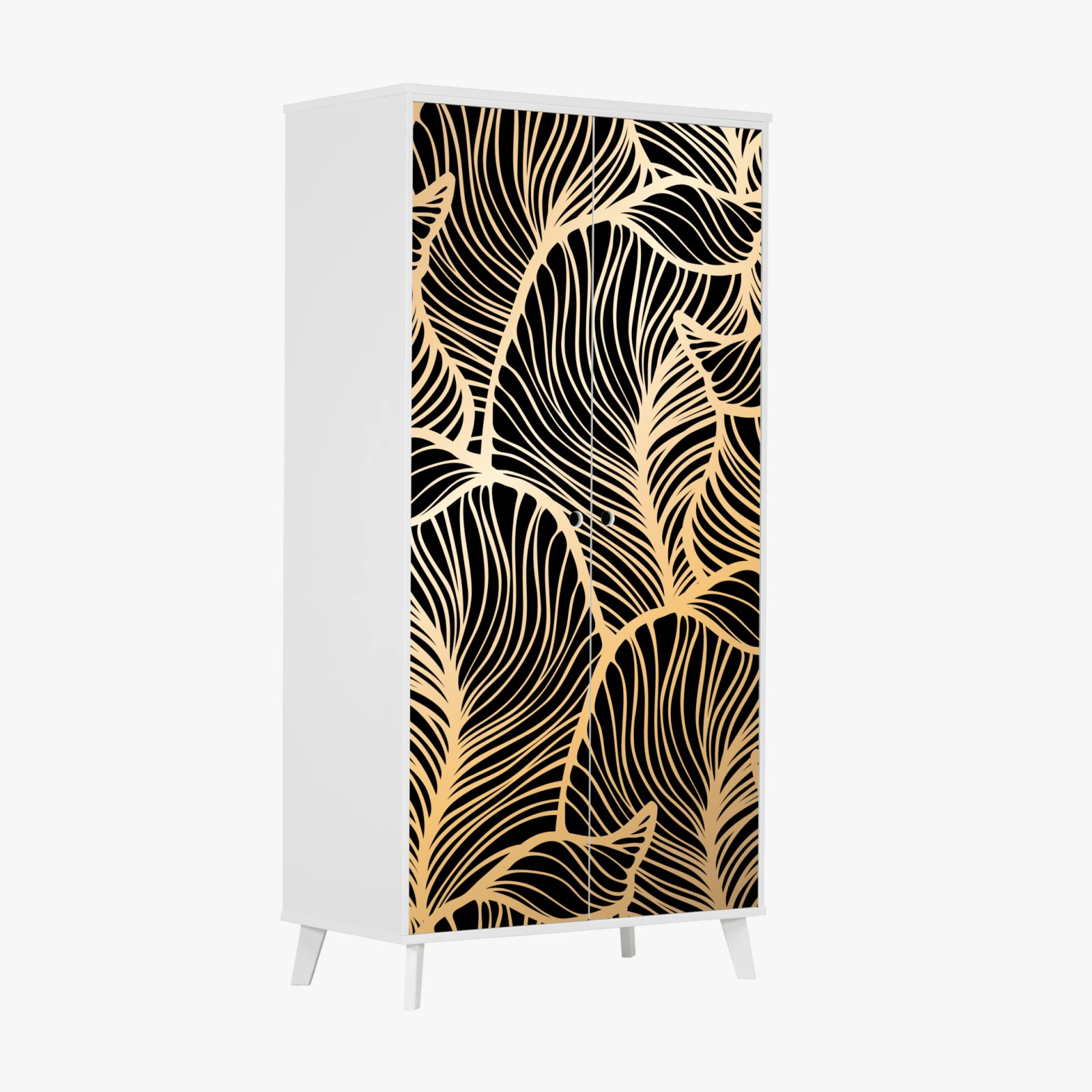 Naklejka na szafę Złoty wzór liści na czarnym tle
