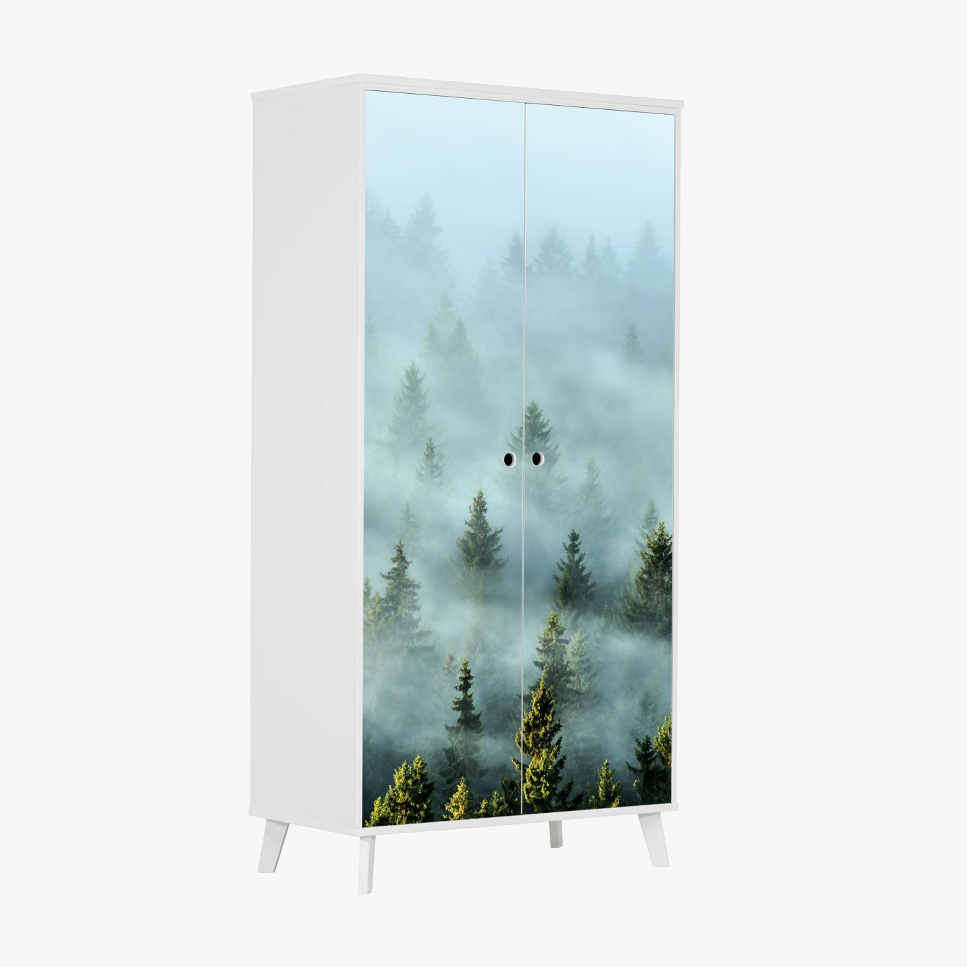 Naklejka na szafę Mglisty las jodłowy o poranku