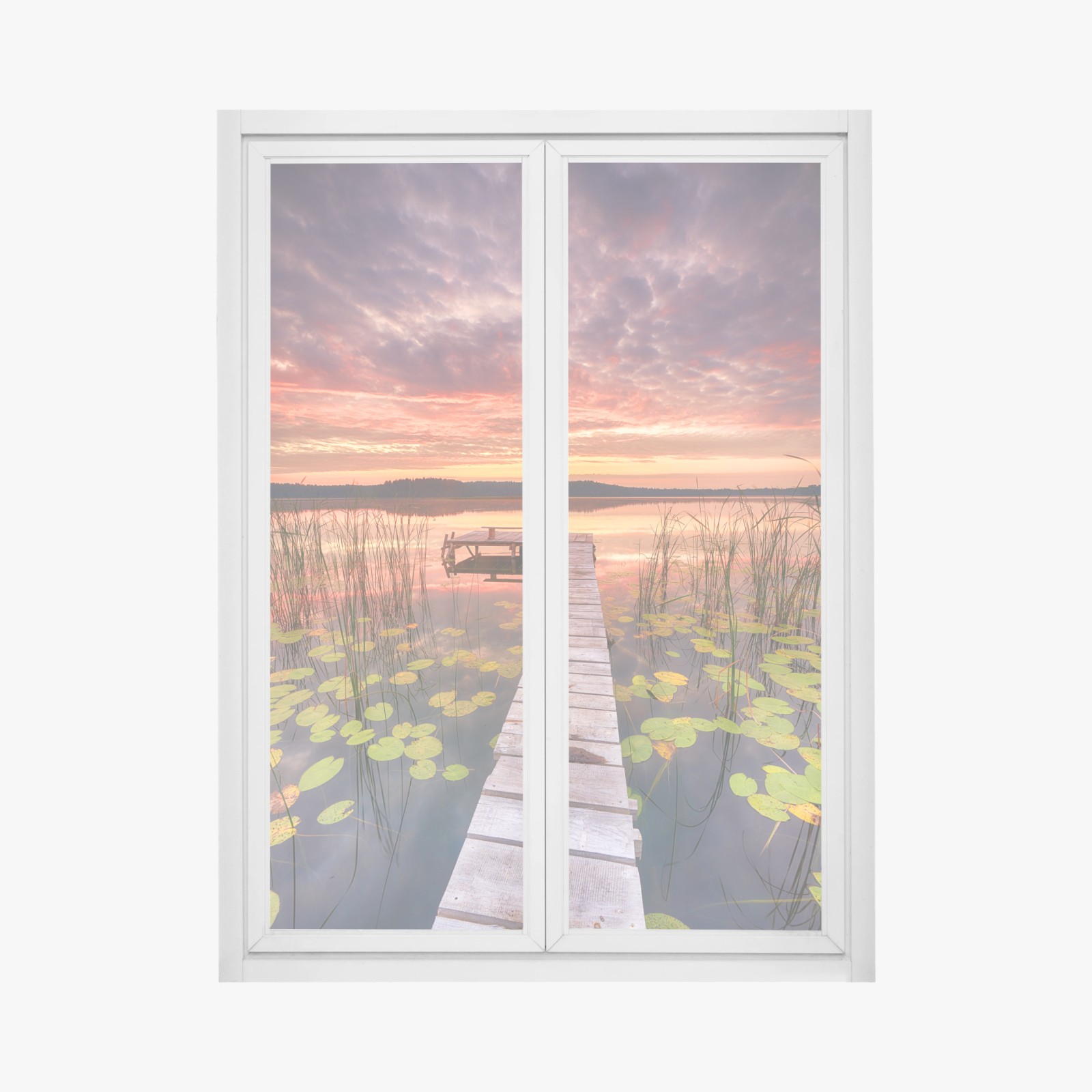 Naklejka na okno Wschód słońca nad spokojnym jeziorem