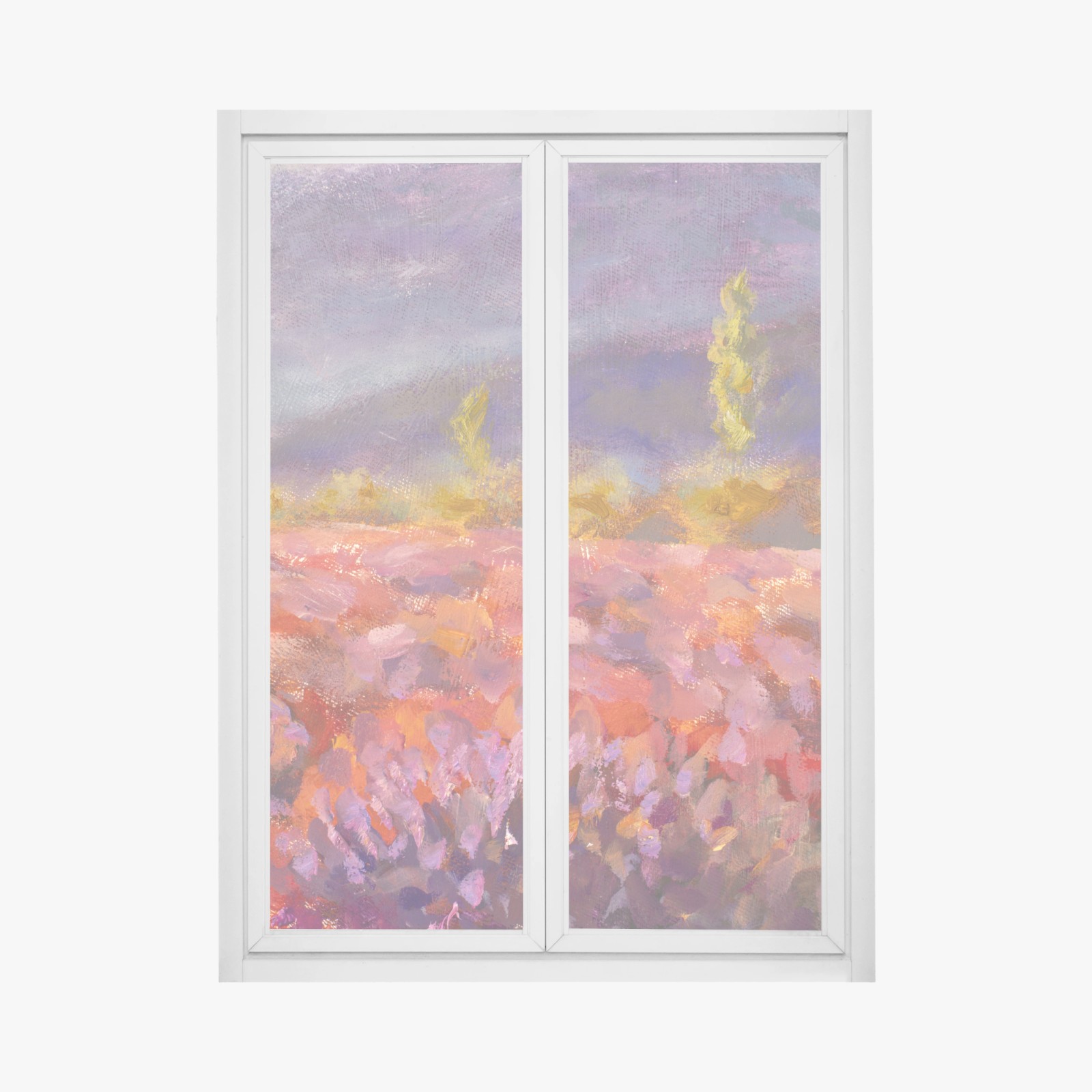 Naklejka na okno Prowansja pole lawendy obraz olejny