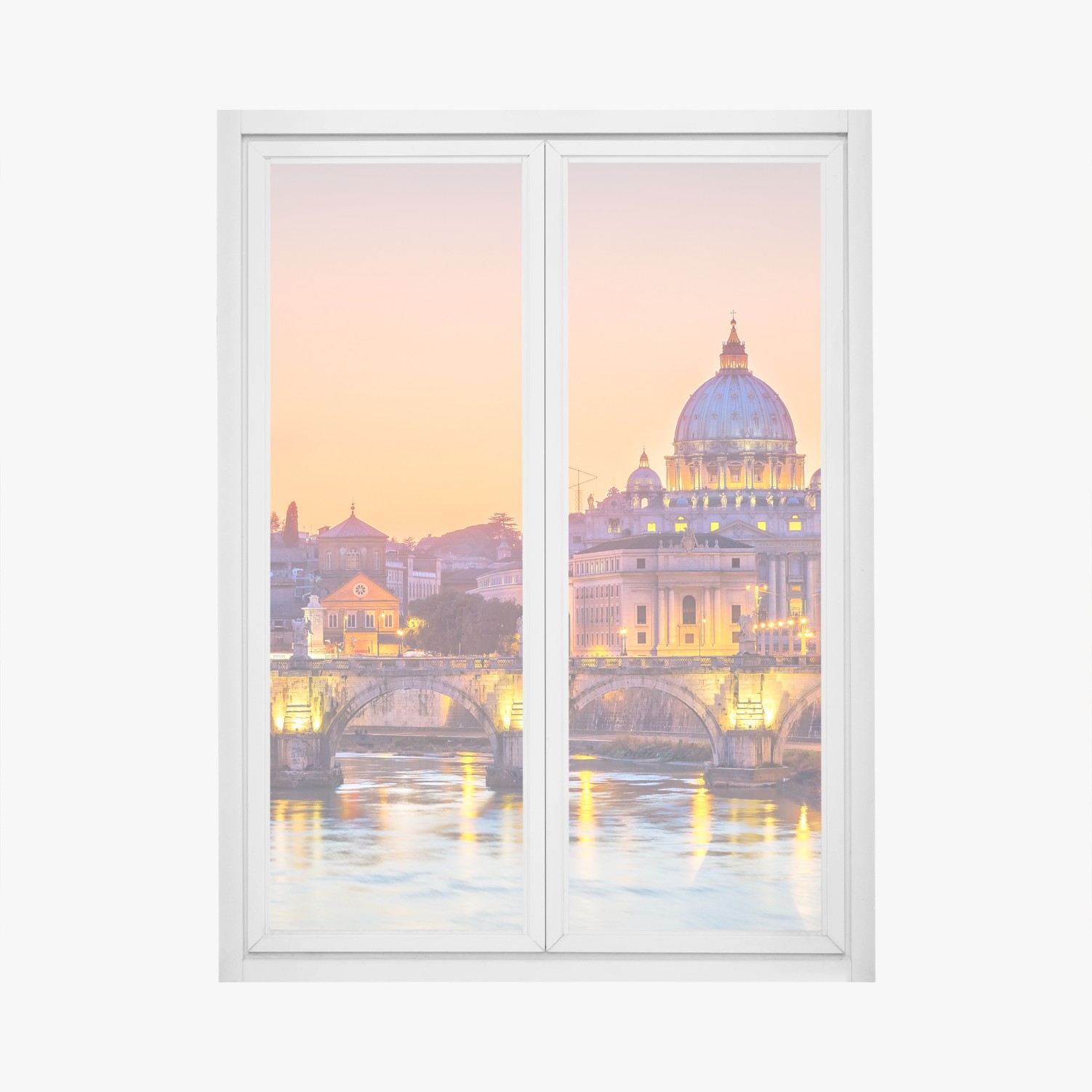 Naklejka na okno Zachód słońca nad Bazyliką św. Piotra i Tybrem