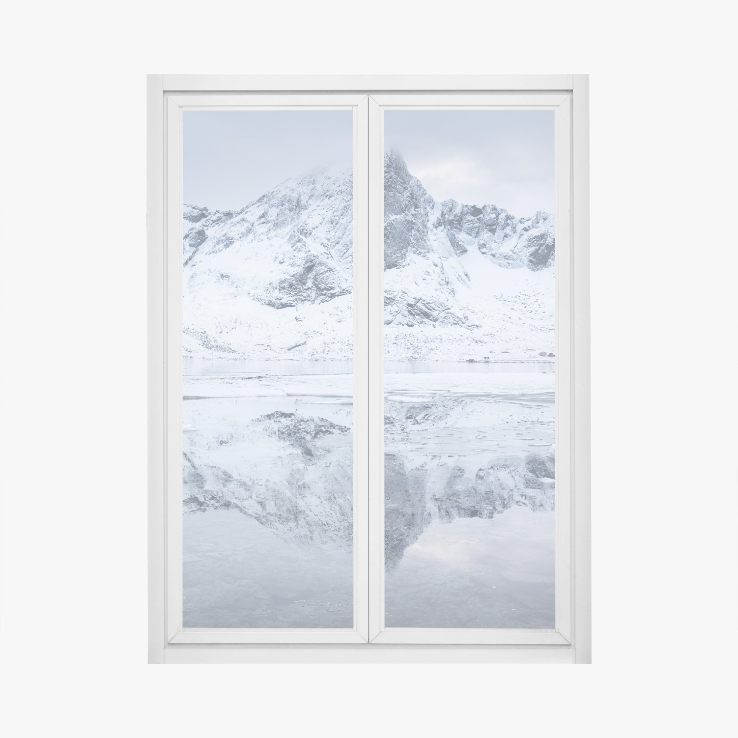 Naklejka na okno Śnieżne odbicie górskie w Norwegii