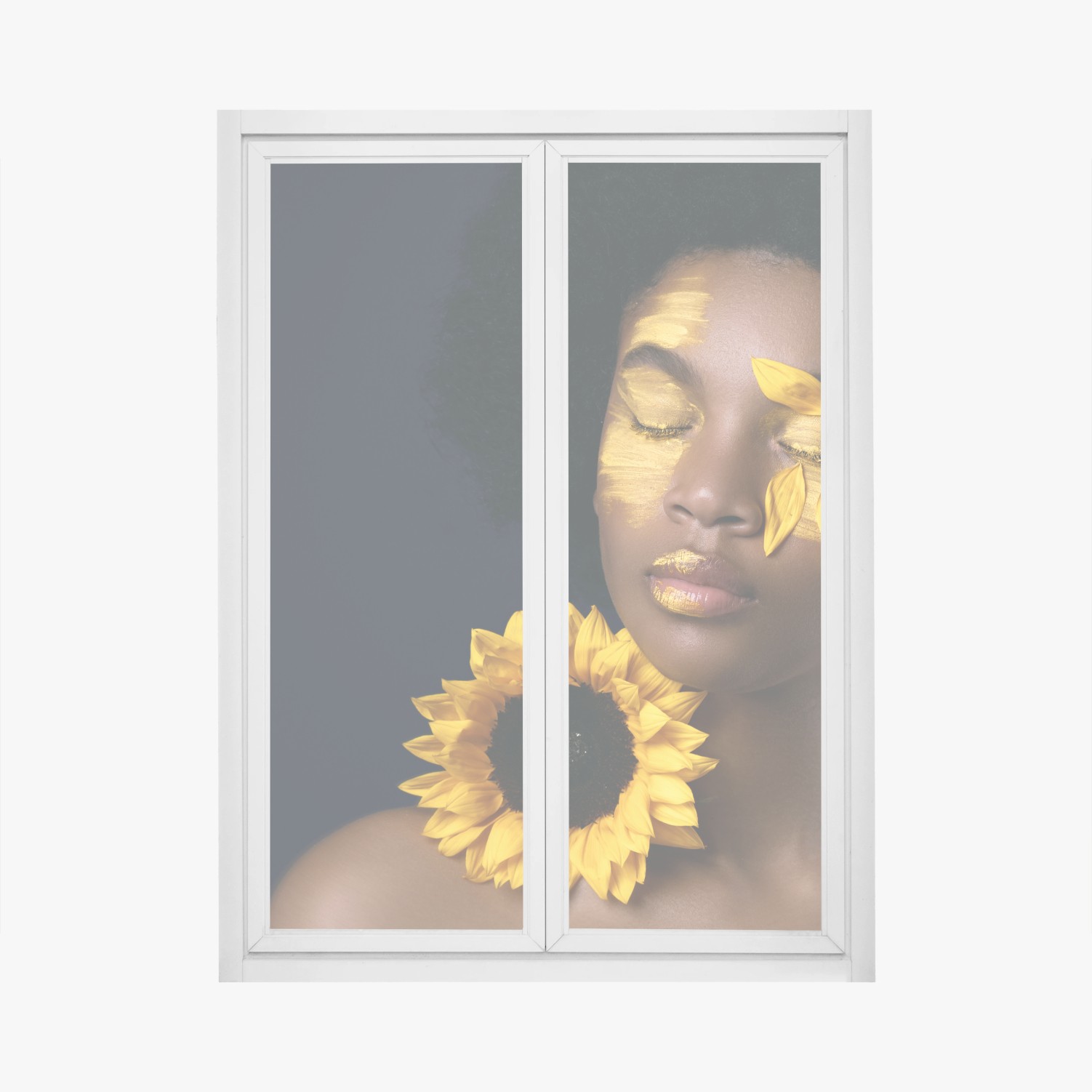 Naklejka na okno Słonecznikowa muza: portret z płatkami słonecznika
