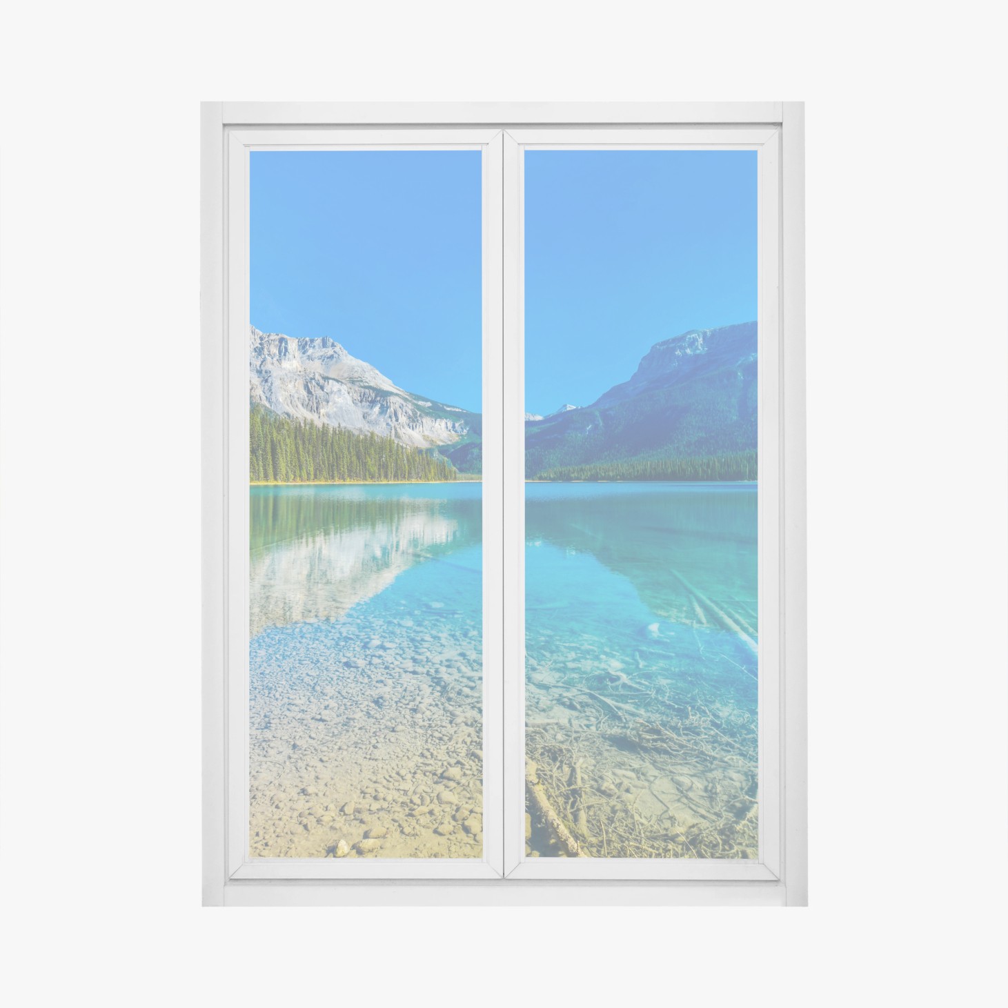 Naklejka na okno Turkusowe alpejskie jezioro z odbiciami gór