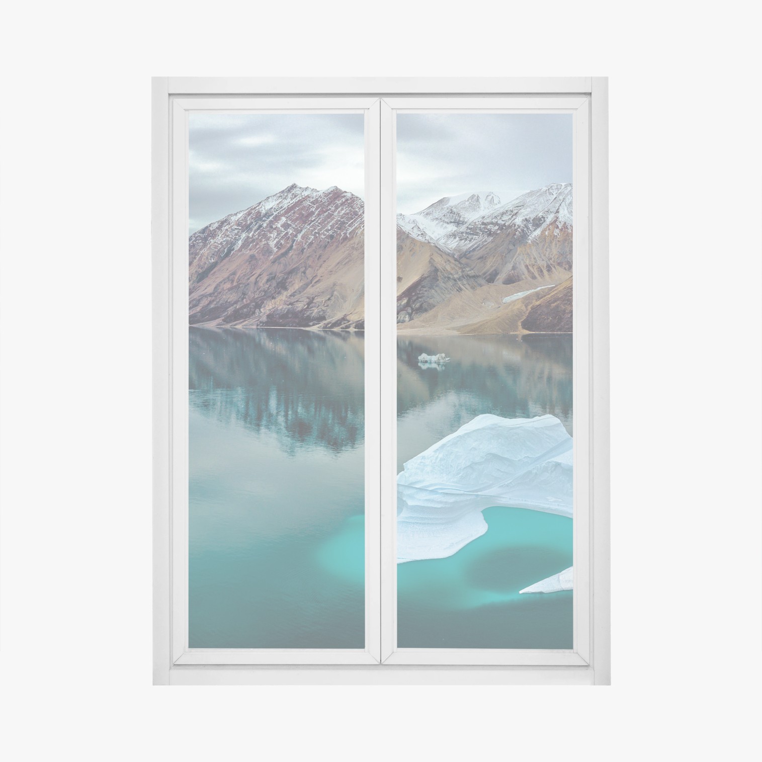 Naklejka na okno Góra lodowa i odbicia gór w turkusowej wodzie