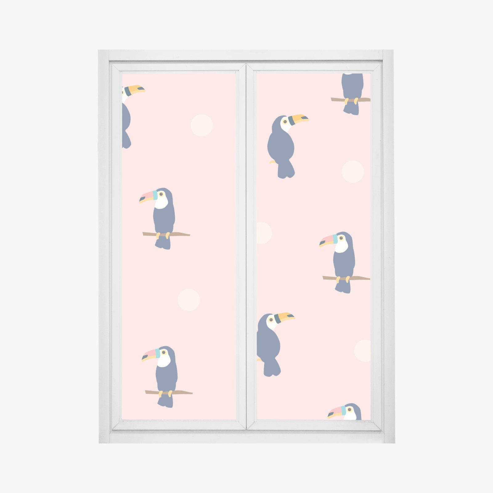 Naklejka na okno Wesoły wzór z tukanami na pastelowym różu