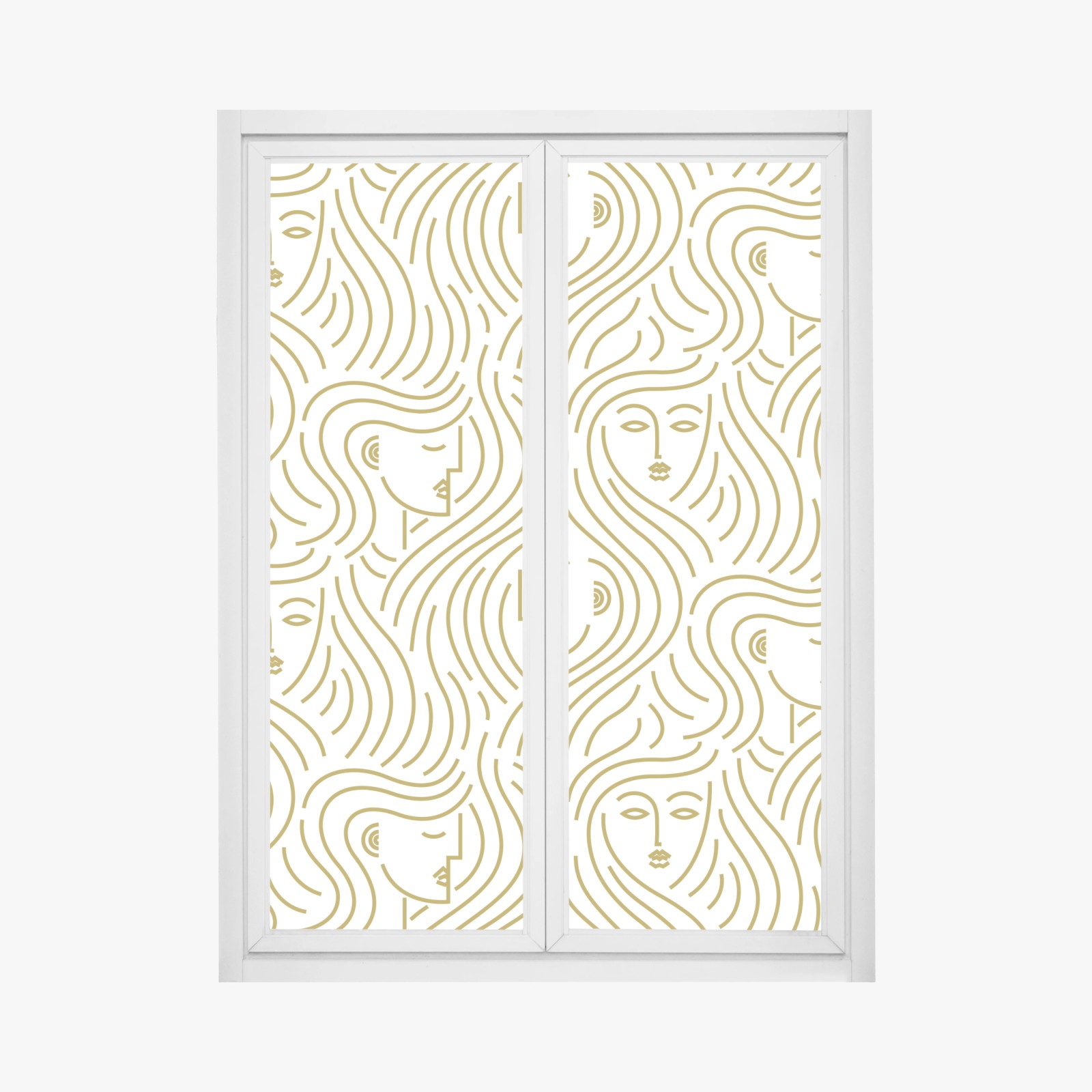 Naklejka na okno Złote fale i abstrakcyjne twarze bezszwowy wzór