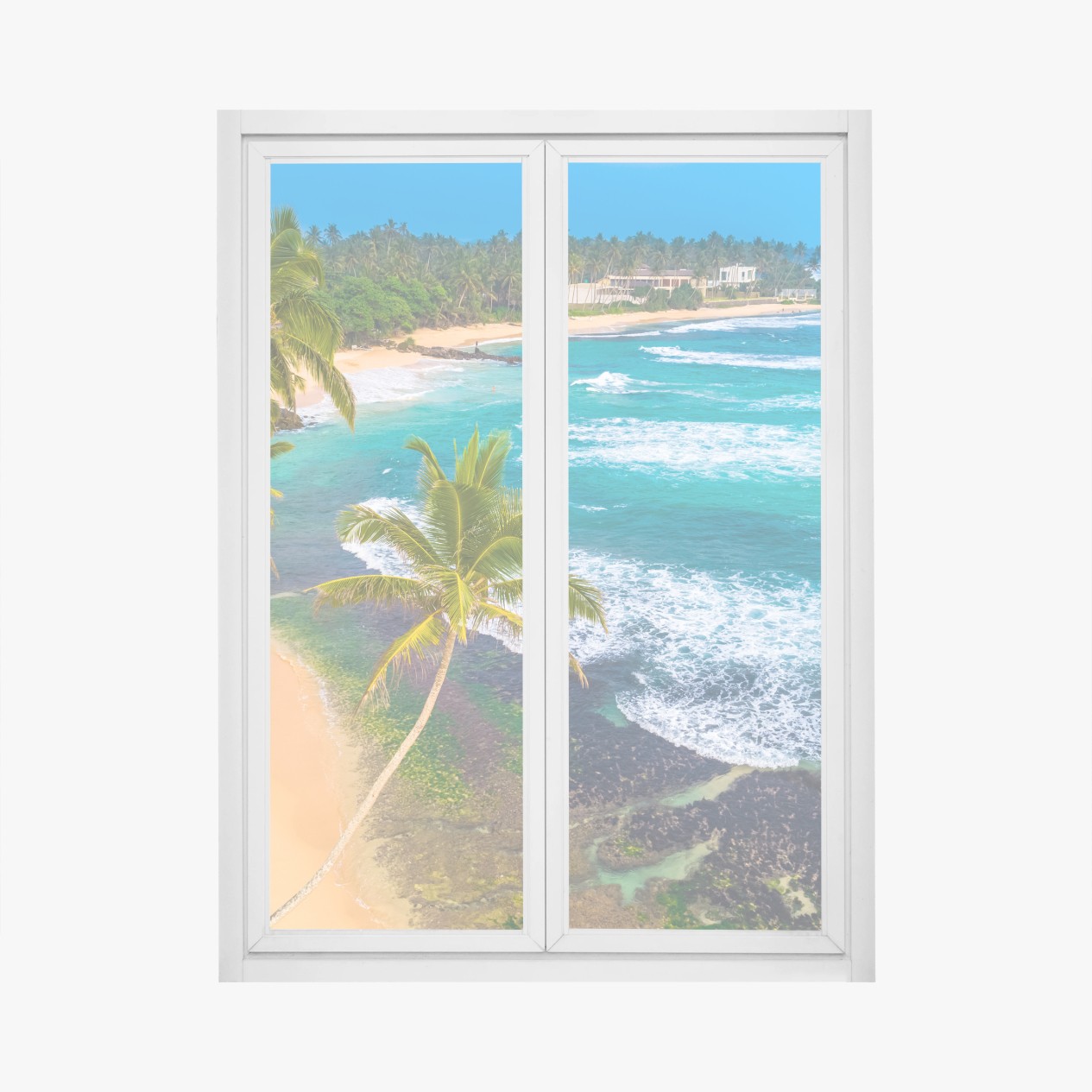 Naklejka na okno Turkusowe tropikalne wybrzeże z palmami