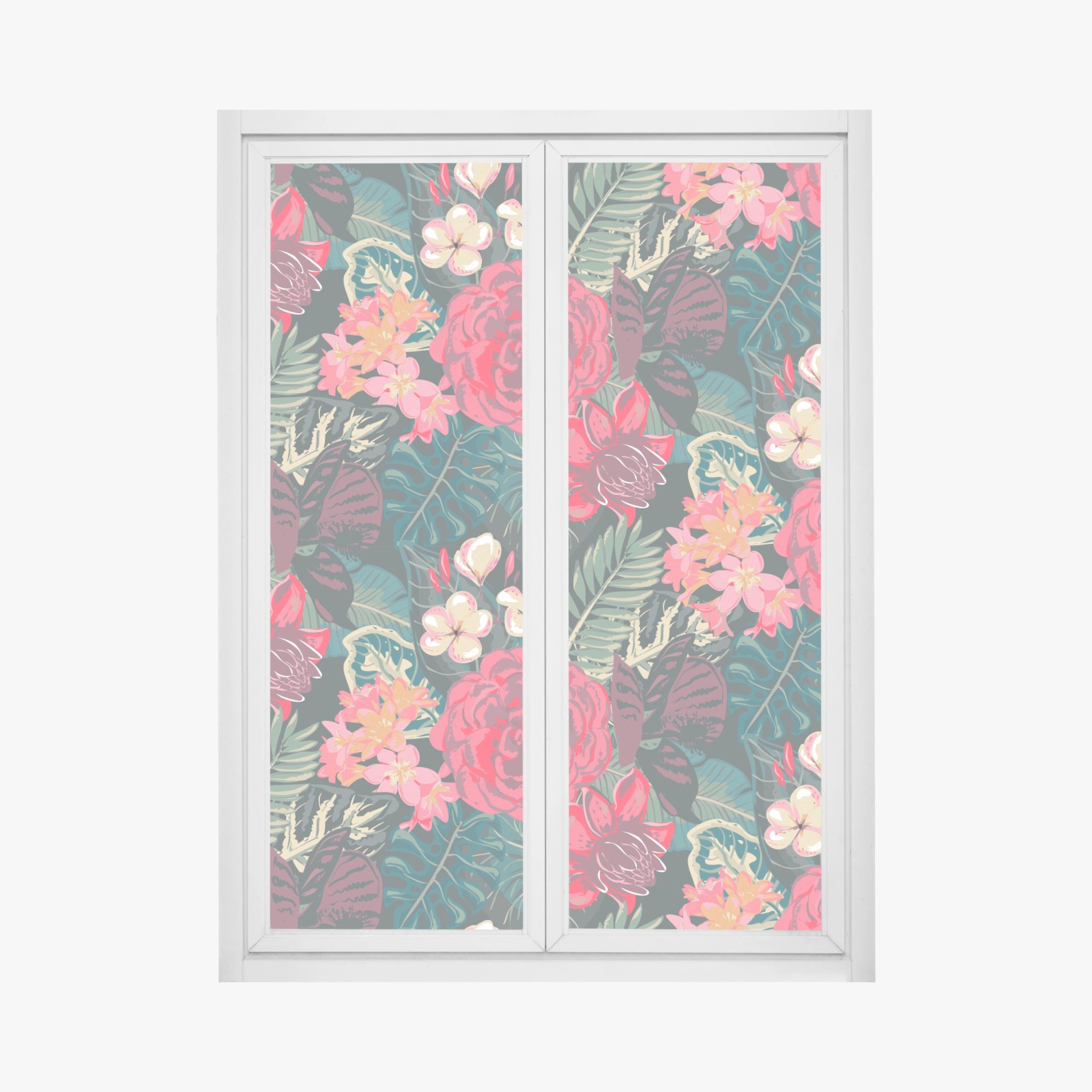Naklejka na okno Tropikalny wzór kwiatowy w różu i turkusie