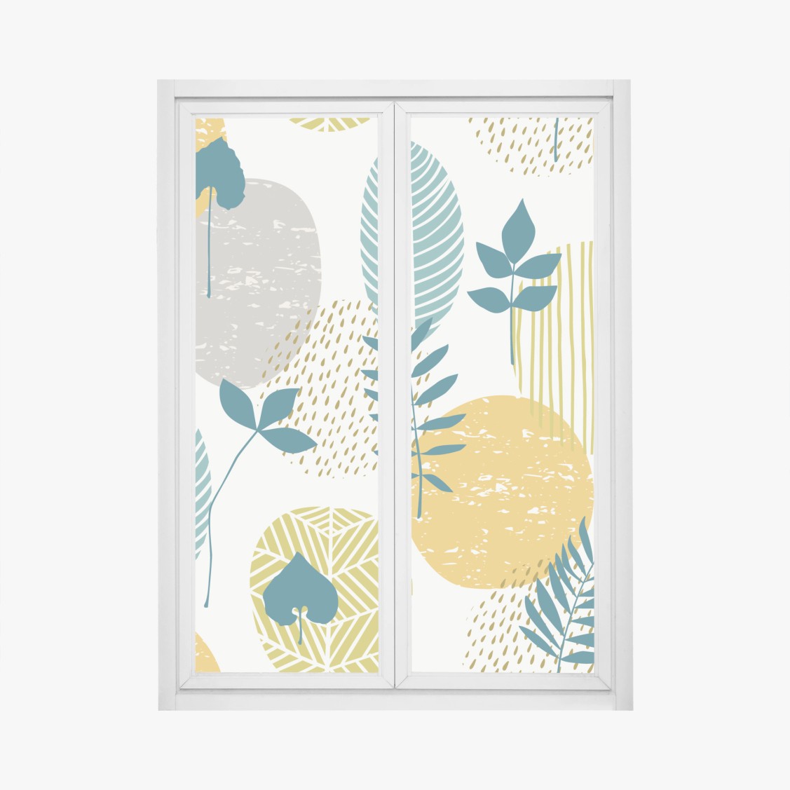 Naklejka na okno Turkusowo-musztardowy botaniczny wzór