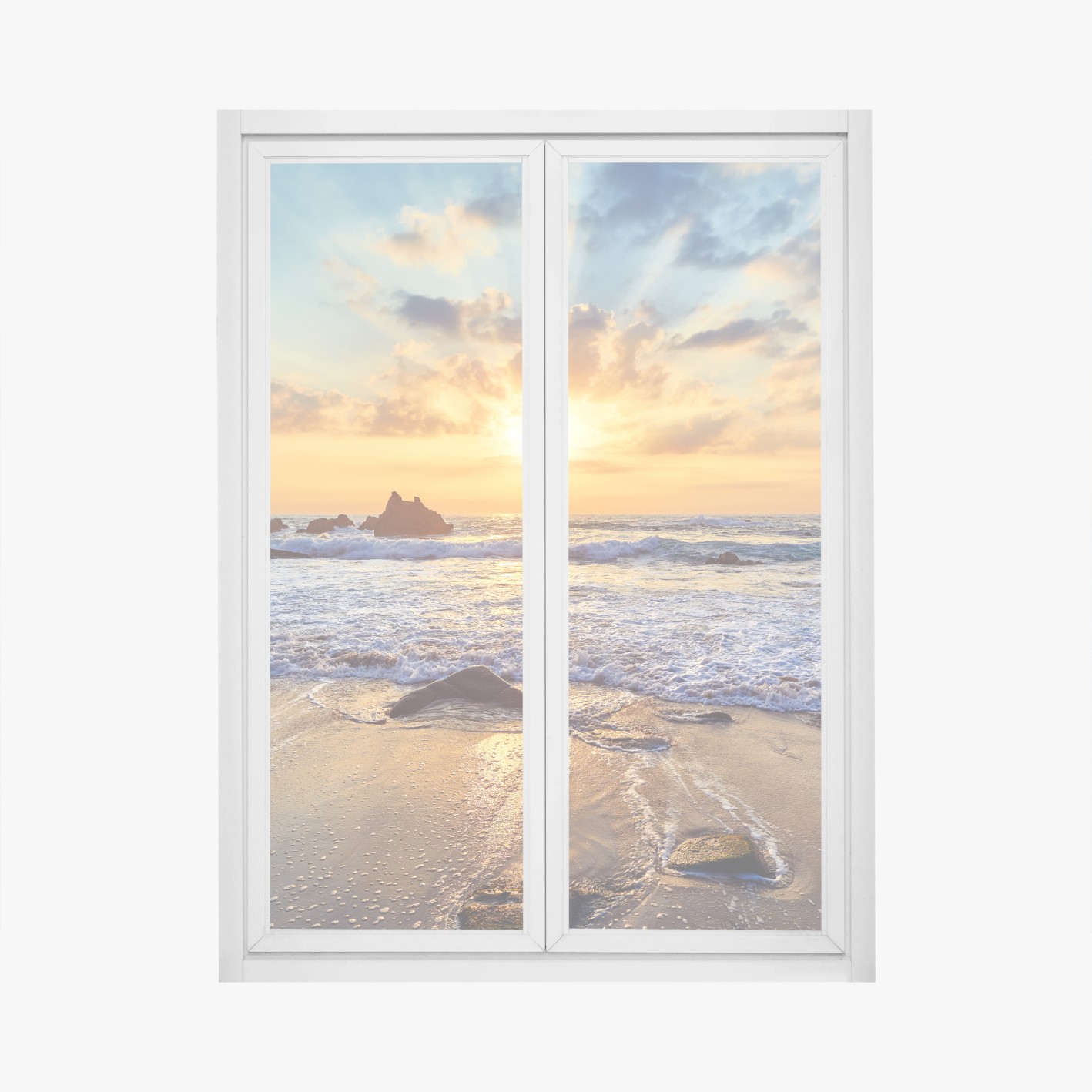 Naklejka na okno Zachód słońca nad skalistym wybrzeżem