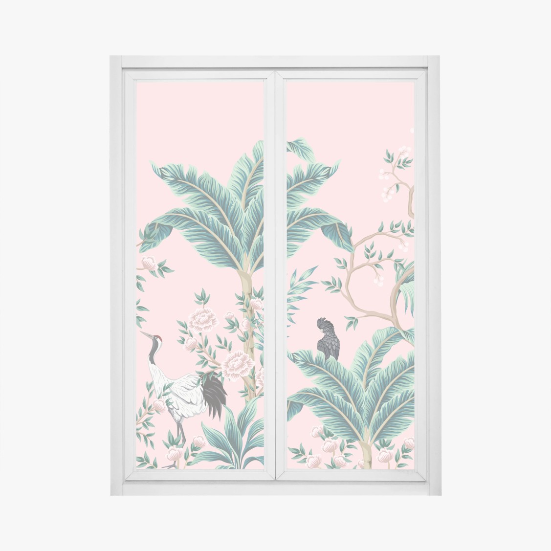 Naklejka na okno Pastelowy tropikalny wzór botaniczny z żurawiami