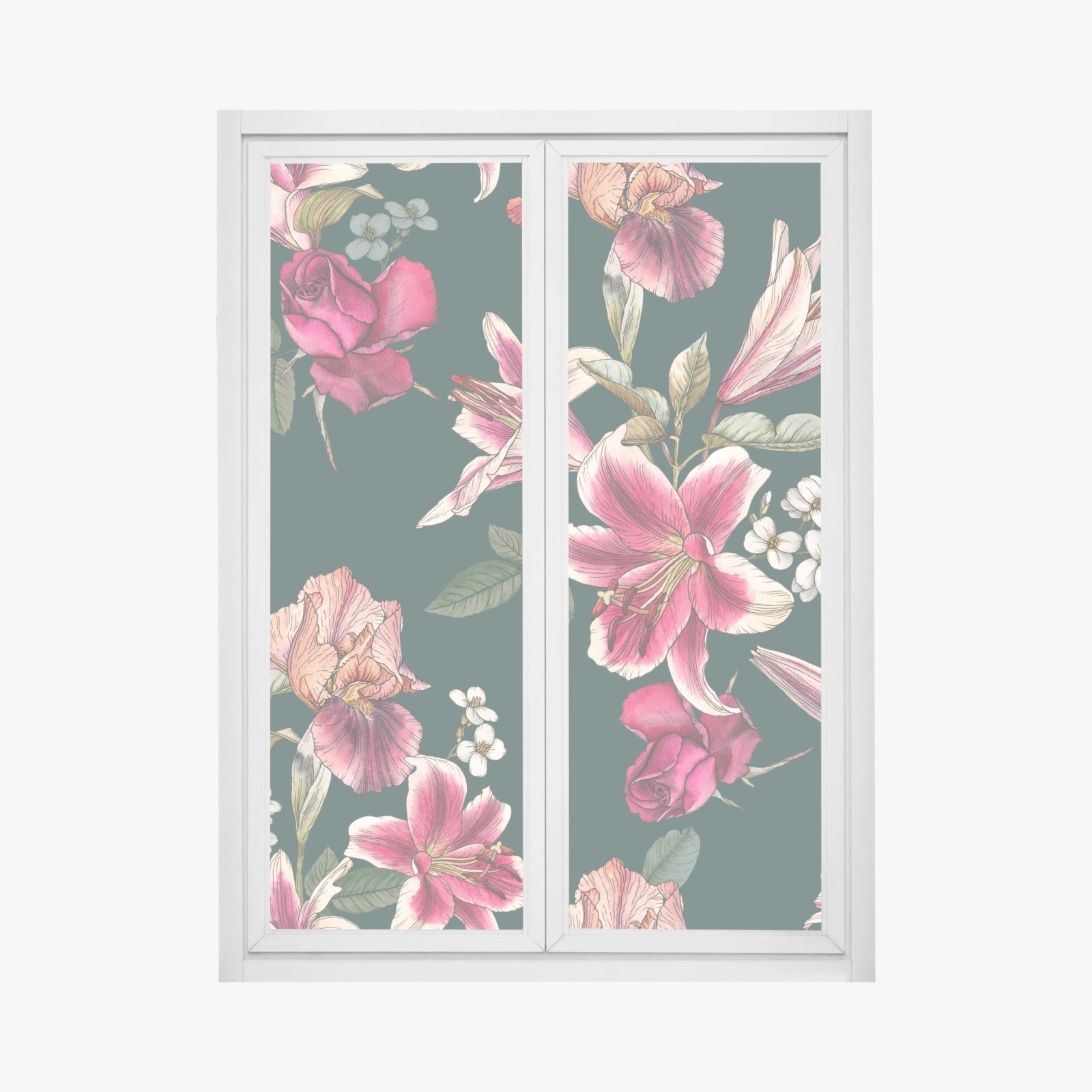 Naklejka na okno Vintage botaniczny wzór kwiatowy na głębokiej zieleni