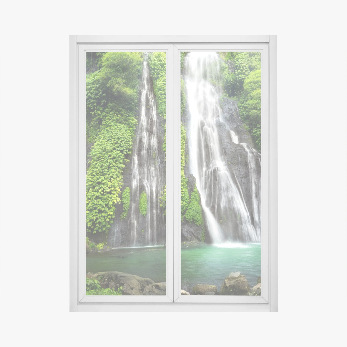 Naklejka na okno Spokojny wodospad w szmaragdowym lesie
