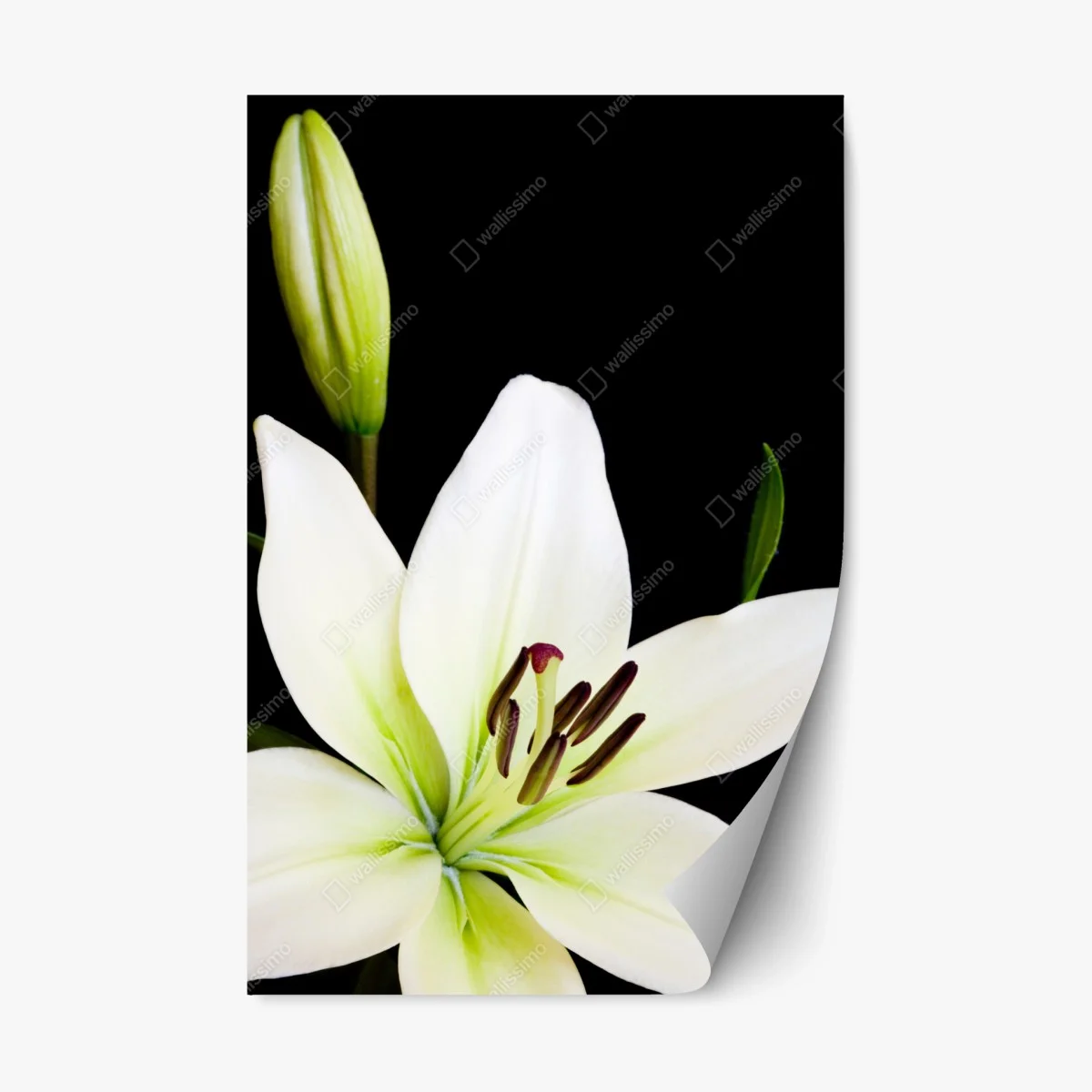 Naklejka repozycjonowalna Biała lilia na czarnym tle