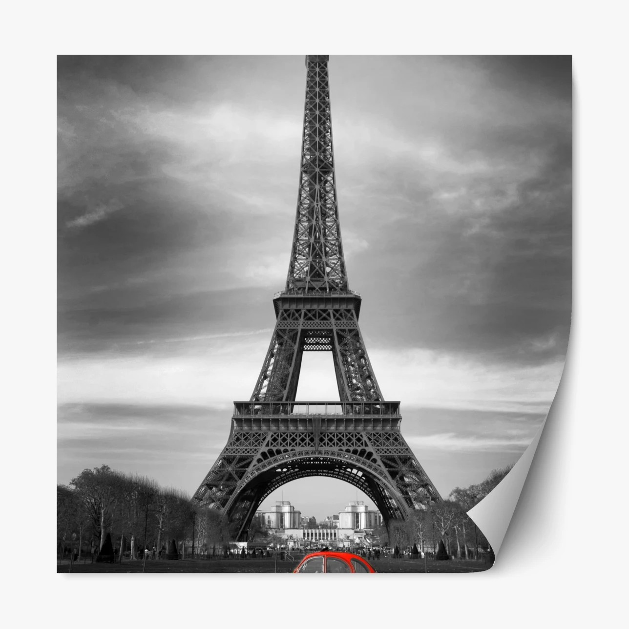 Naklejka repozycjonowalna Wieża Eiffla z czerwonym zabytkowym samochodem