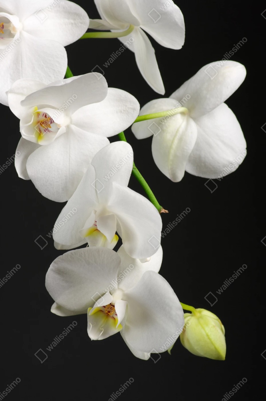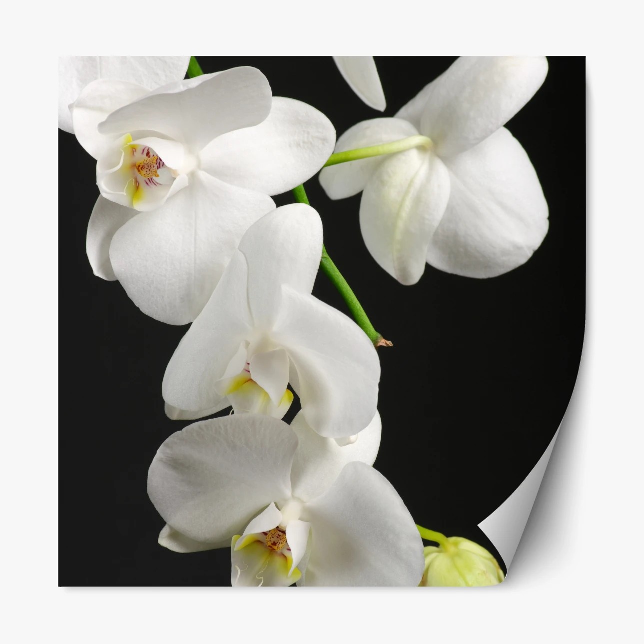 Naklejka repozycjonowalna Biała gałązka orchidei na czarnym tle