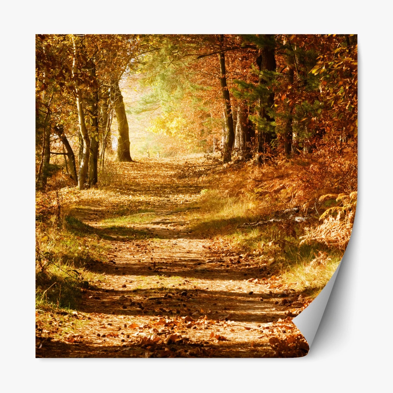Naklejka repozycjonowalna Jesienna leśna ścieżka ze złotym światłem