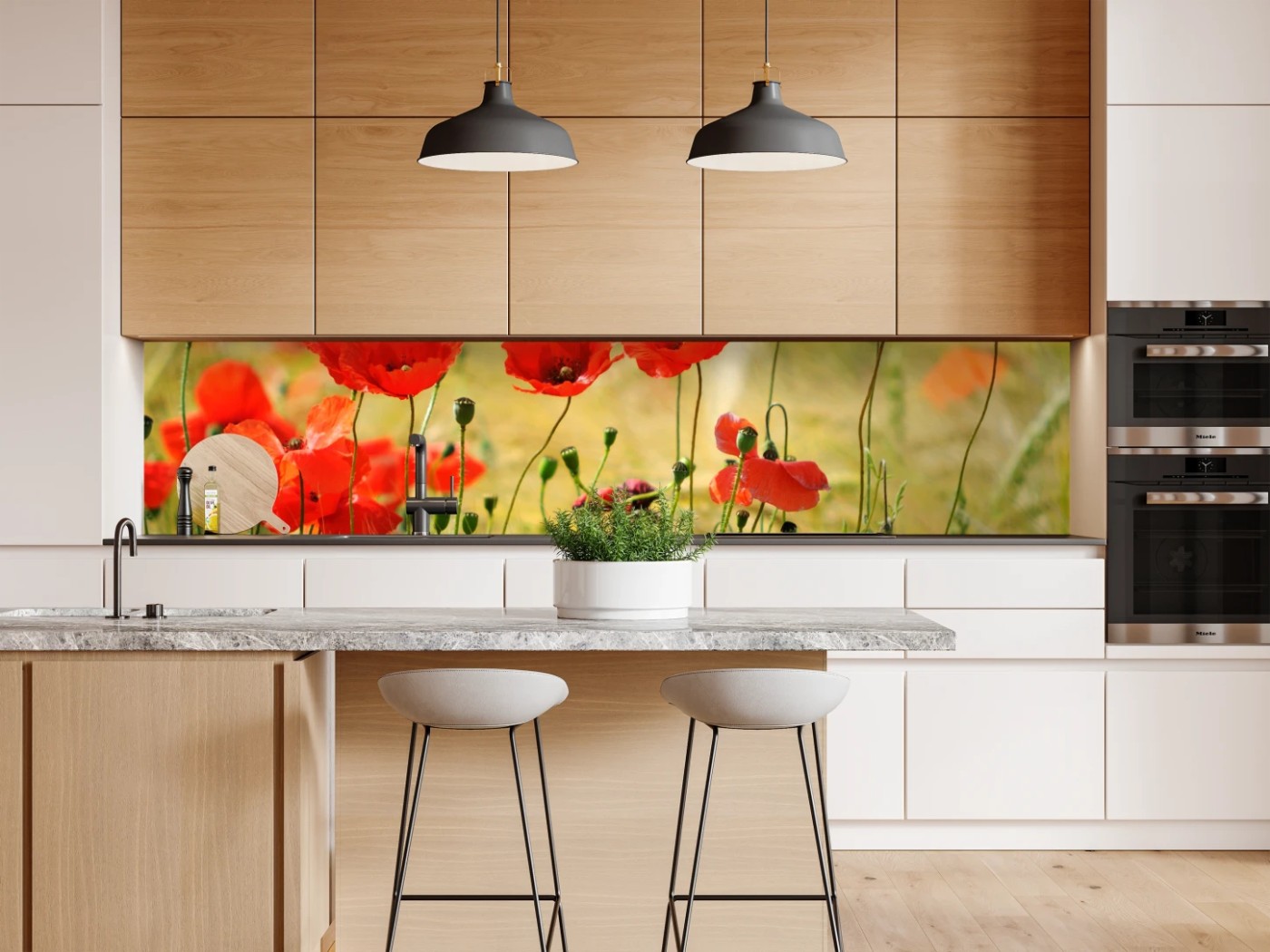 Naklejka repozycjonowalna Łąka czerwonych maków w słońcu