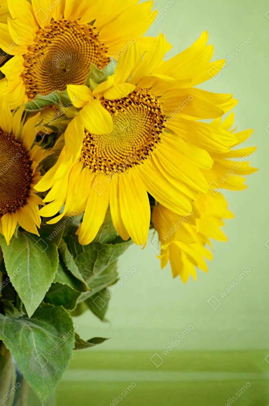 Naklejka repozycjonowalna Jasny bukiet słoneczników na zielonym tle