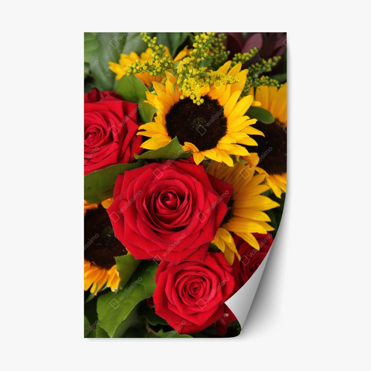 Naklejka repozycjonowalna Czerwone róże i słoneczniki w bukiecie