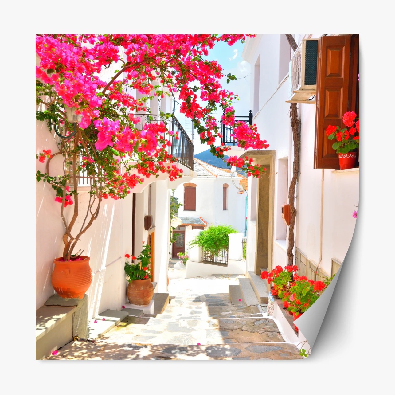 Naklejka repozycjonowalna Słoneczny zaułek śródziemnomorski z bugenwillą