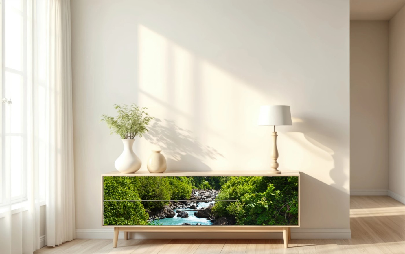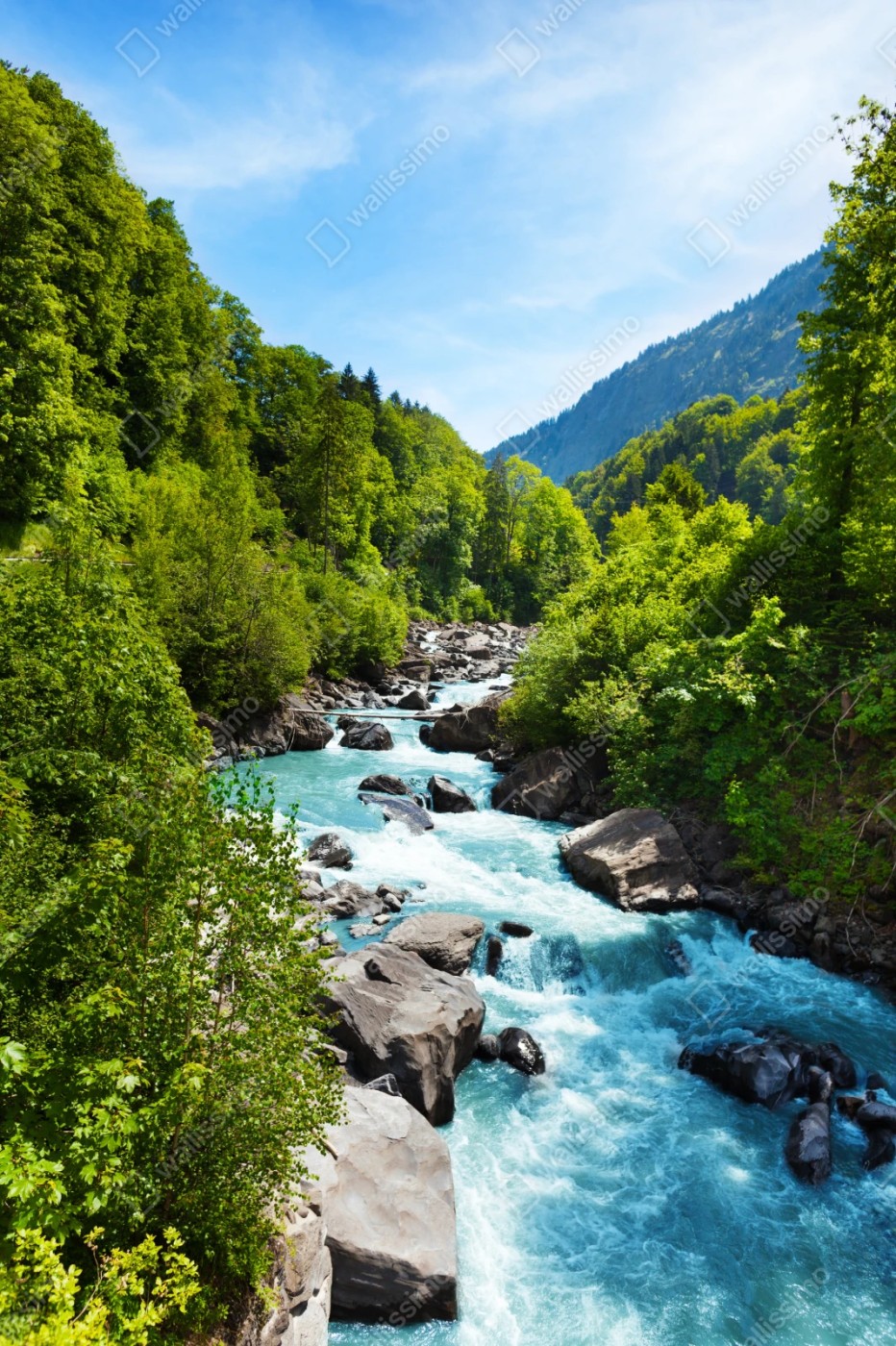 Naklejka repozycjonowalna Górska rzeka w bujnej zieleni