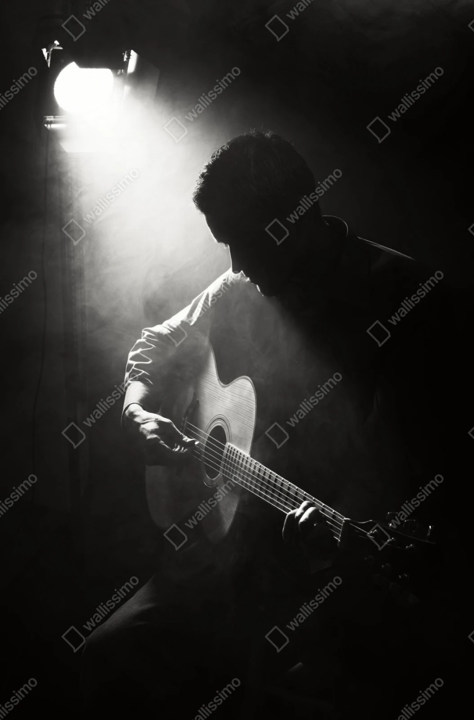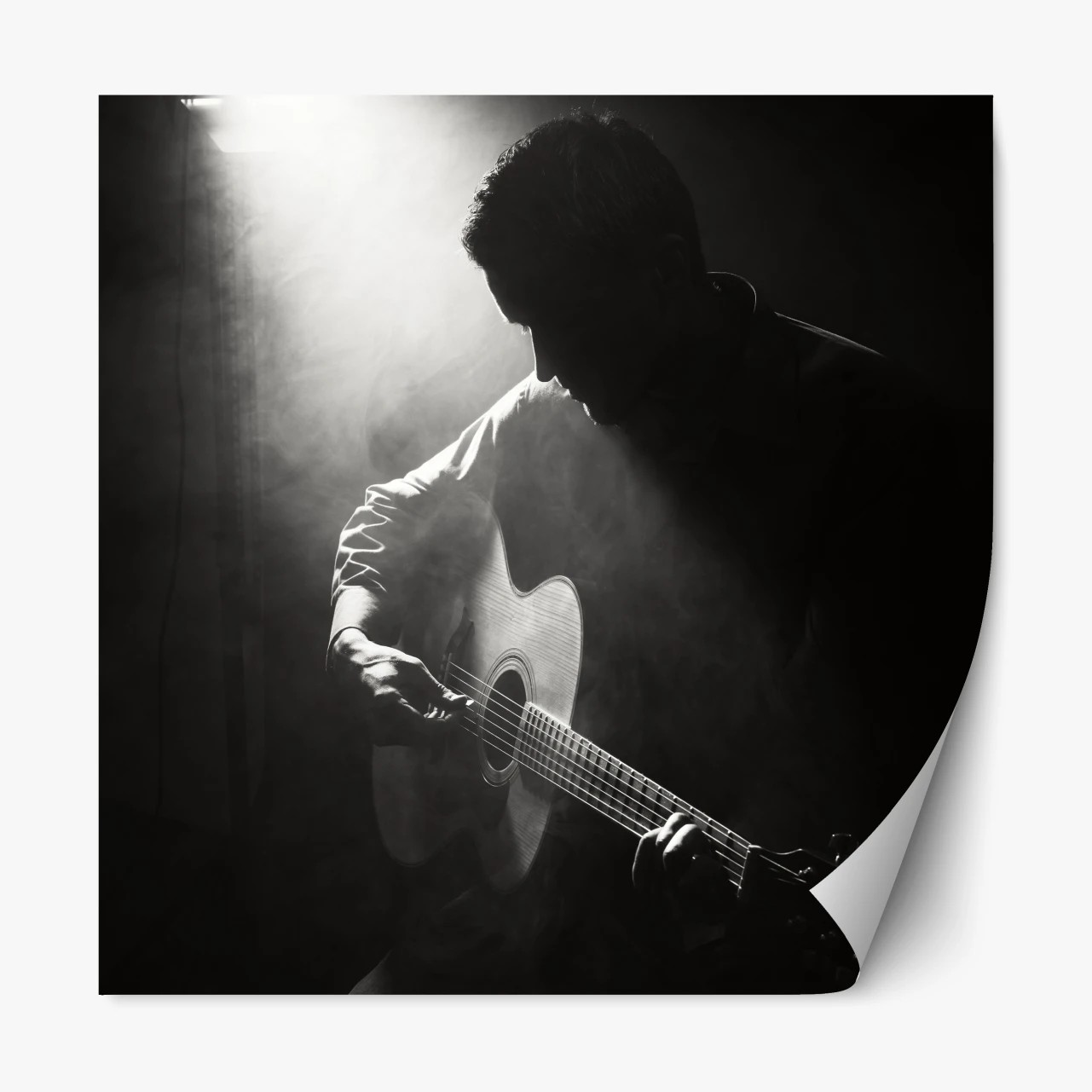 Naklejka repozycjonowalna Sylwetka gitarzysty w świetle reflektora