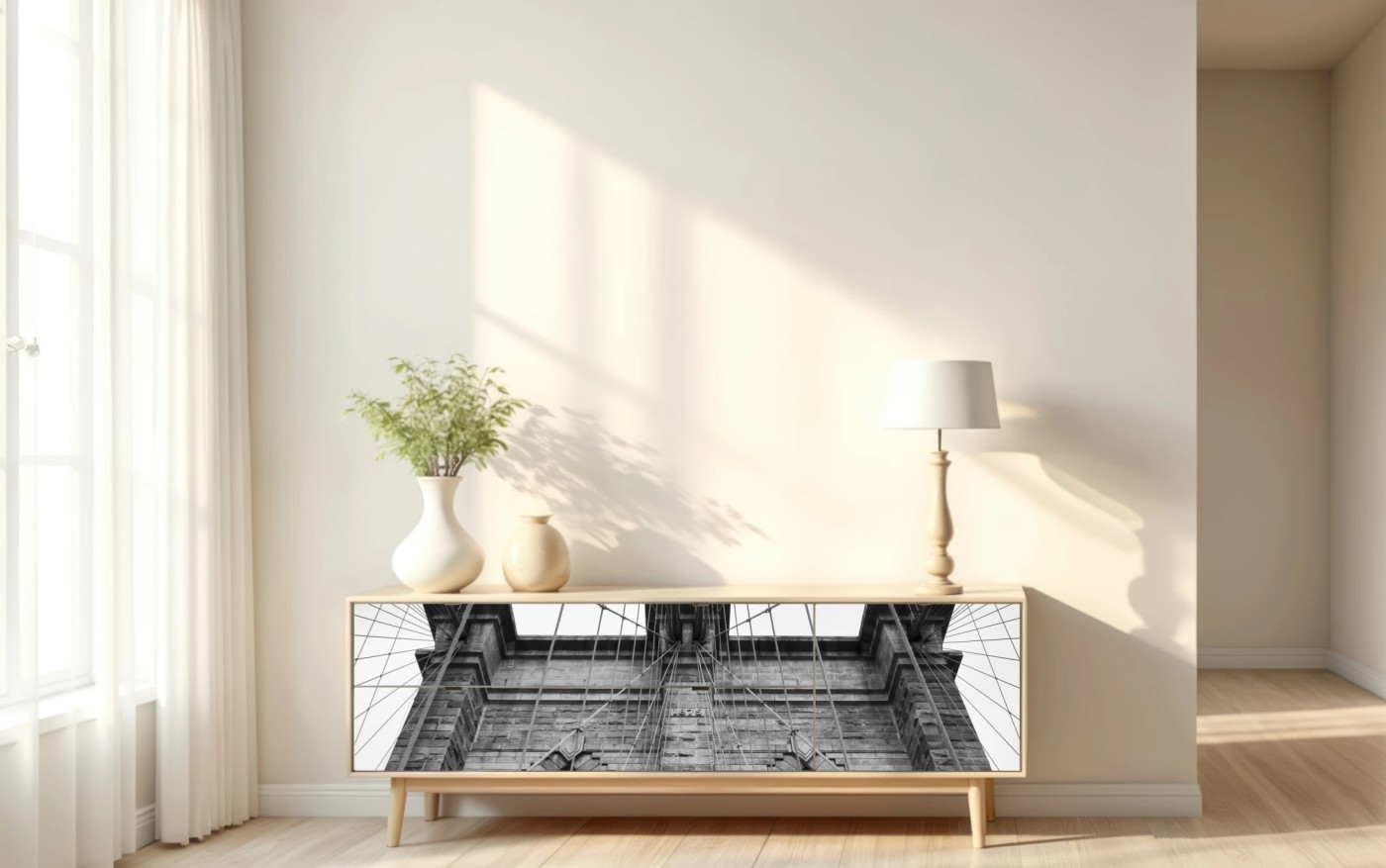 Naklejka repozycjonowalna Perspektywa Mostu Brooklyńskiego w monochromie