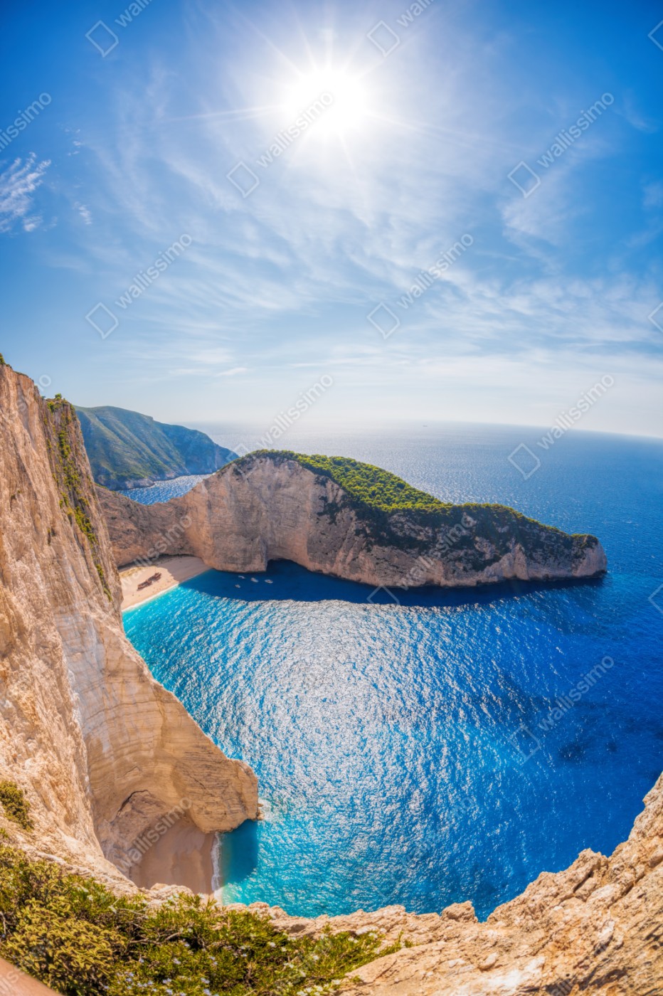 Naklejka repozycjonowalna Słoneczne klify na plaży Navagio, Zakynthos