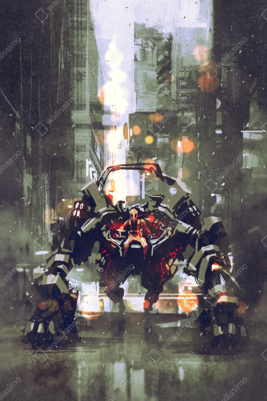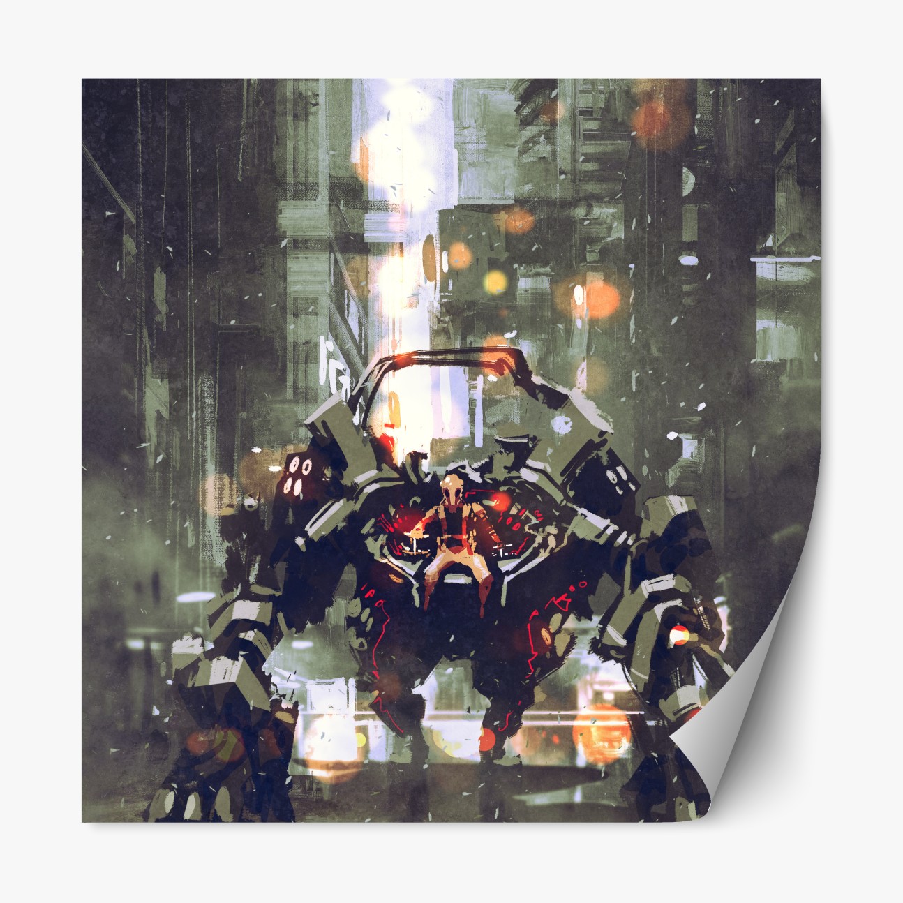 Naklejka repozycjonowalna Futurystyczny mech w neonowym mieście