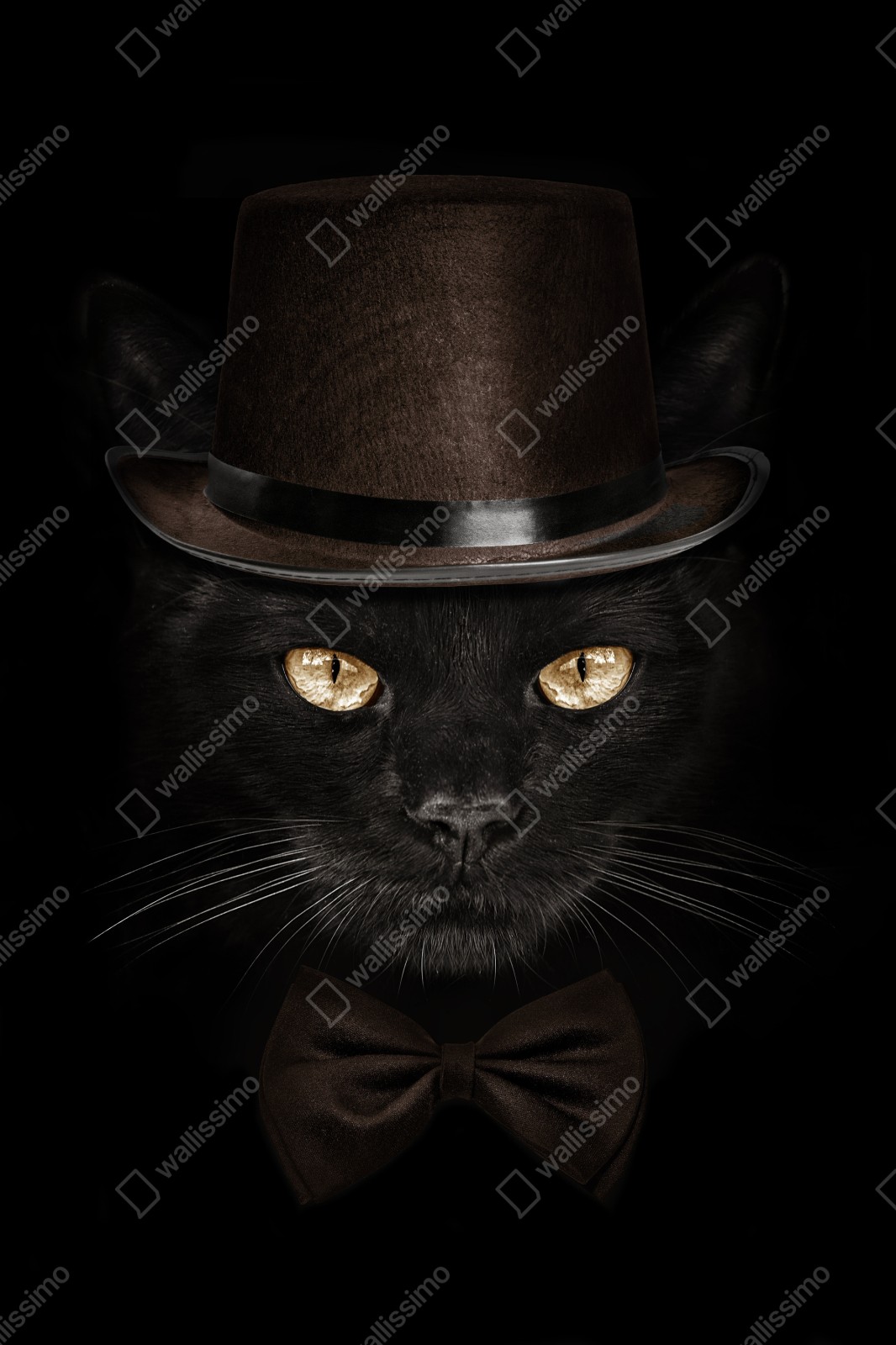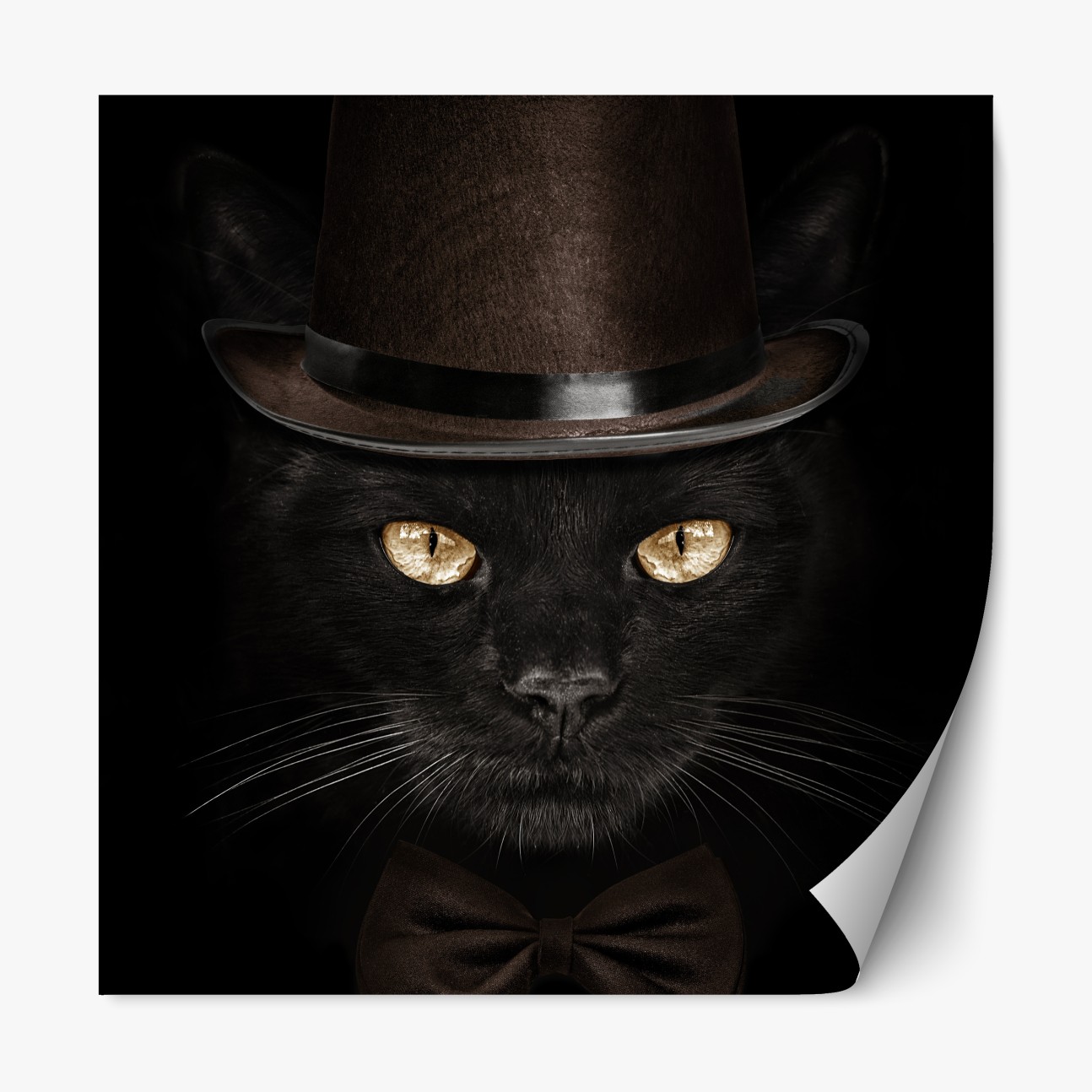 Naklejka repozycjonowalna Elegancki czarny kot w cylindrze i muszce