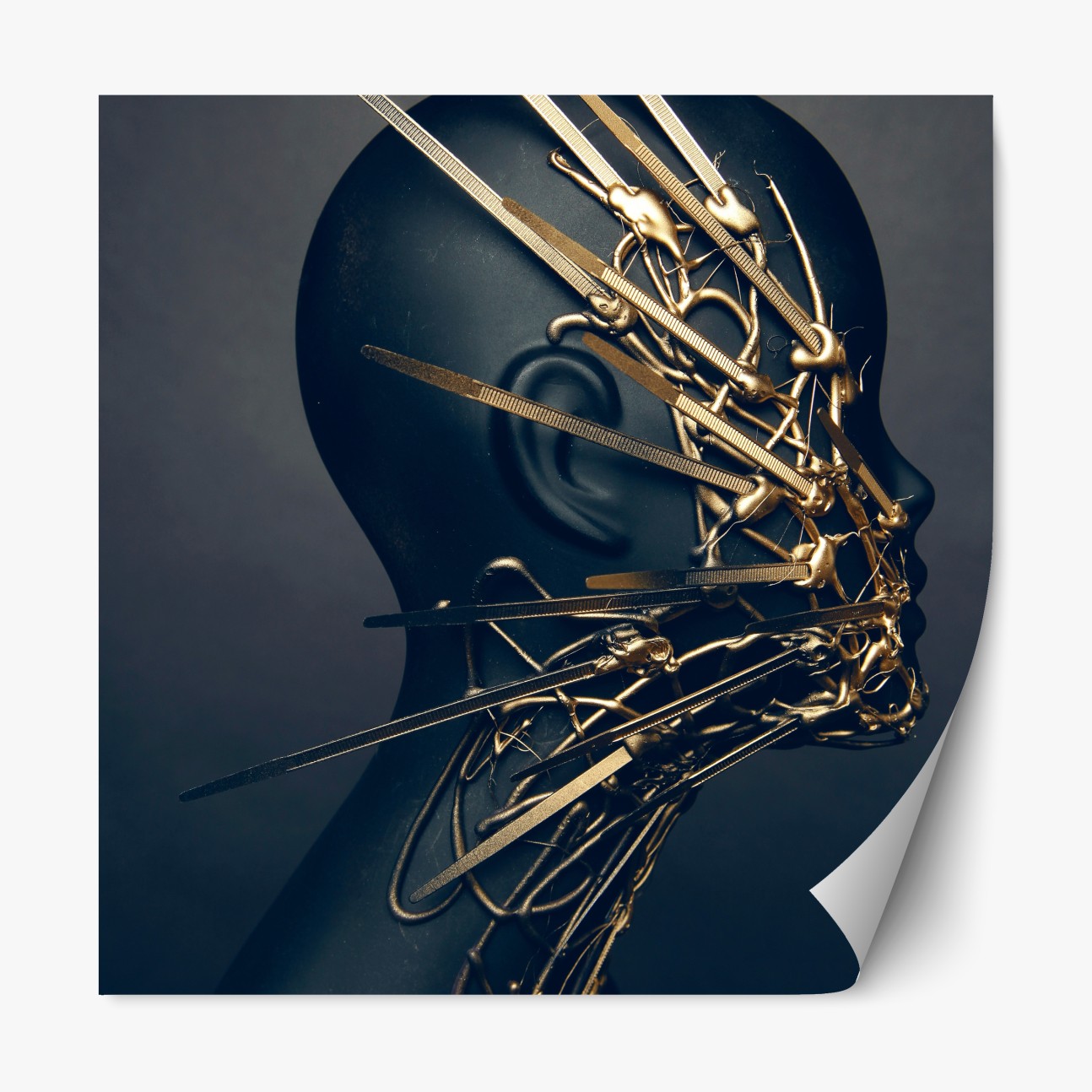 Naklejka repozycjonowalna Złota rzeźba portretowa na czarnym manekinie